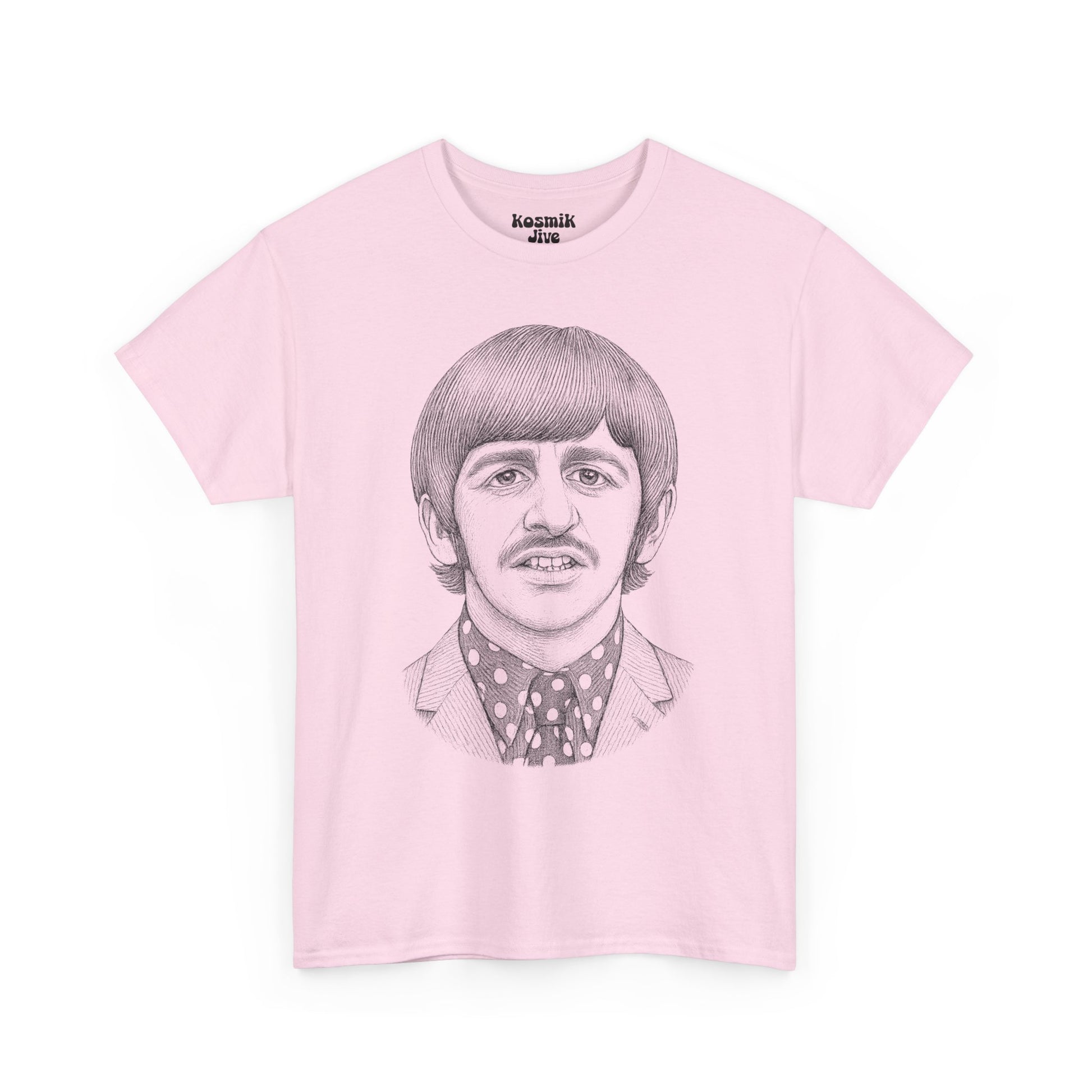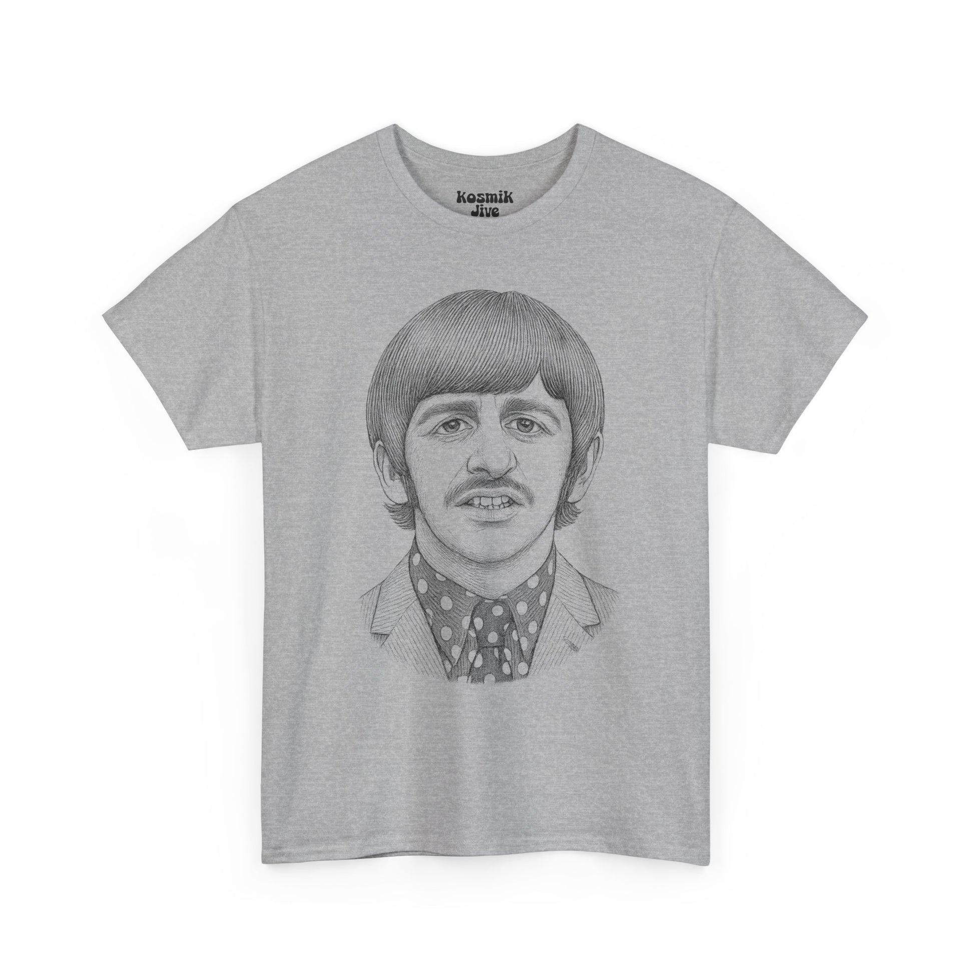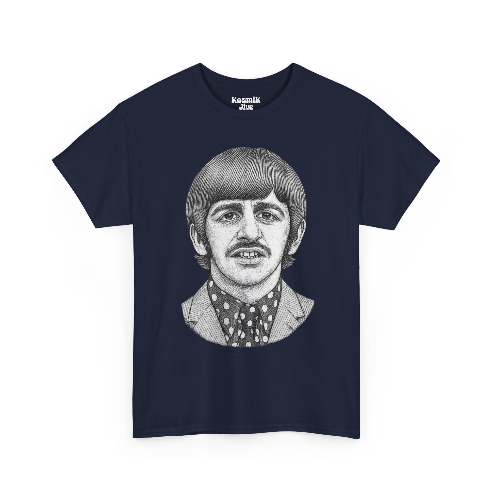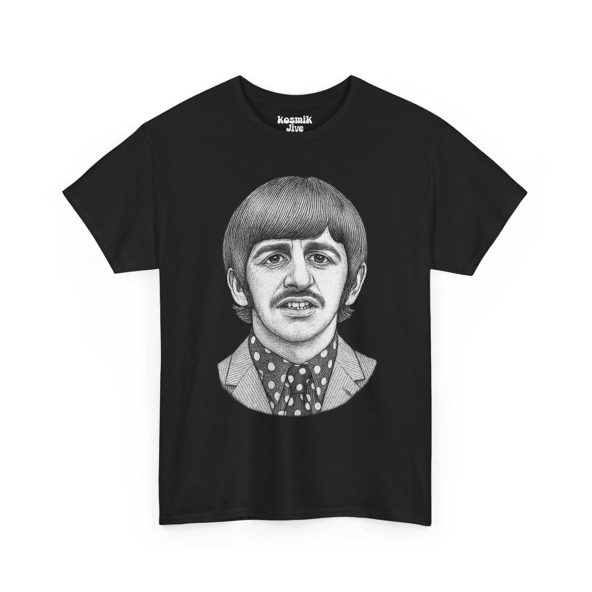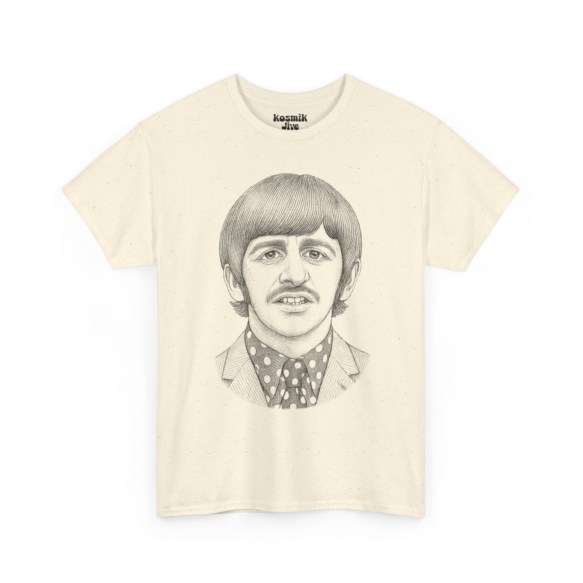A vibrant illustrated portrait of Ringo Starr in 1966, complete with his expressive features, patterned suit, and unmistakable charm. This tee celebrates Ringo’s personality and style during one of the most creative years in the band’s journey.