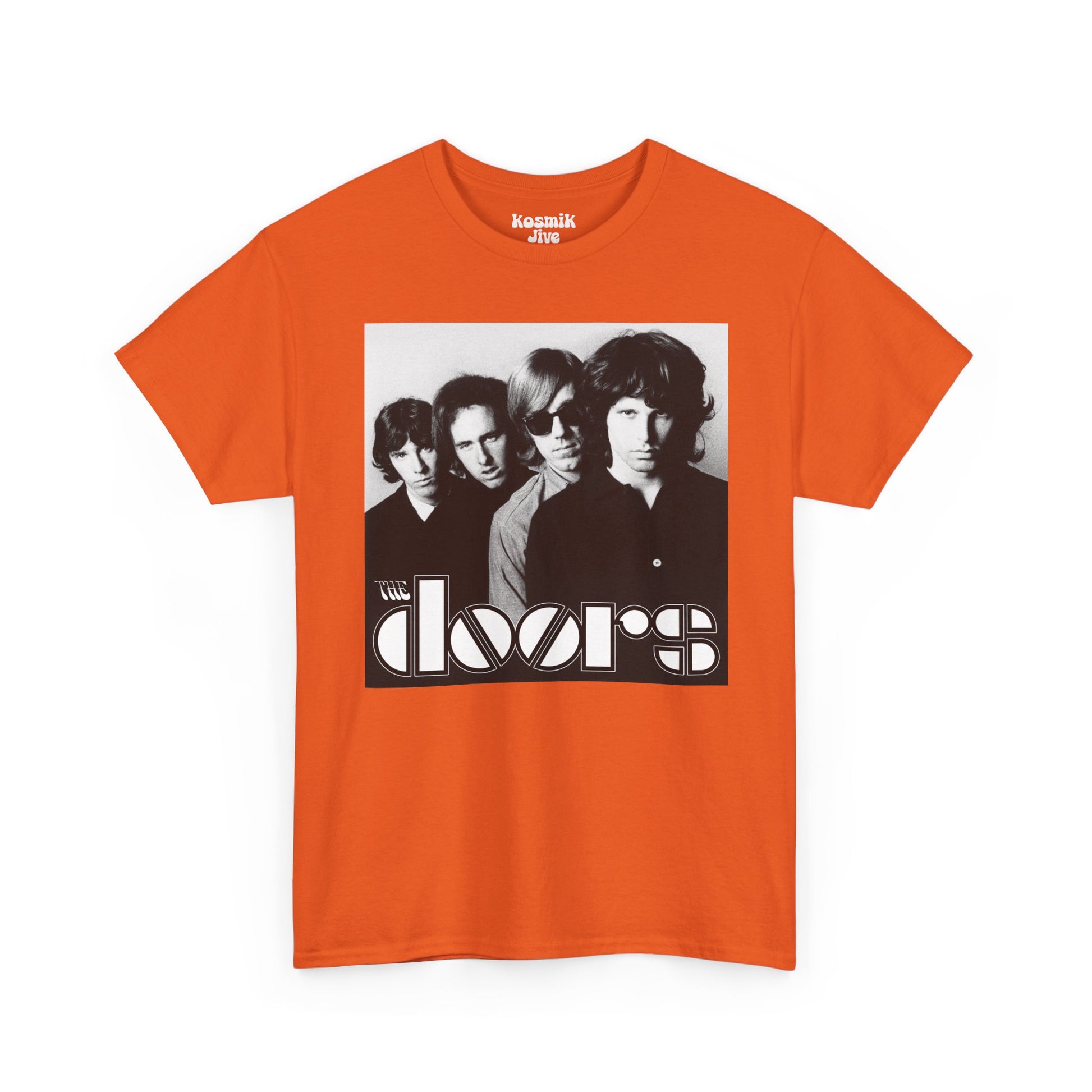 A bold monochrome take on The Doors’ unmistakable presence. This black T-shirt features a crisp black-and-white portrait of the band, paired with their iconic modular logo. Minimal, striking and timeless — an essential pick for anyone who loves classic rock imagery and Morrison’s unmistakable charisma.