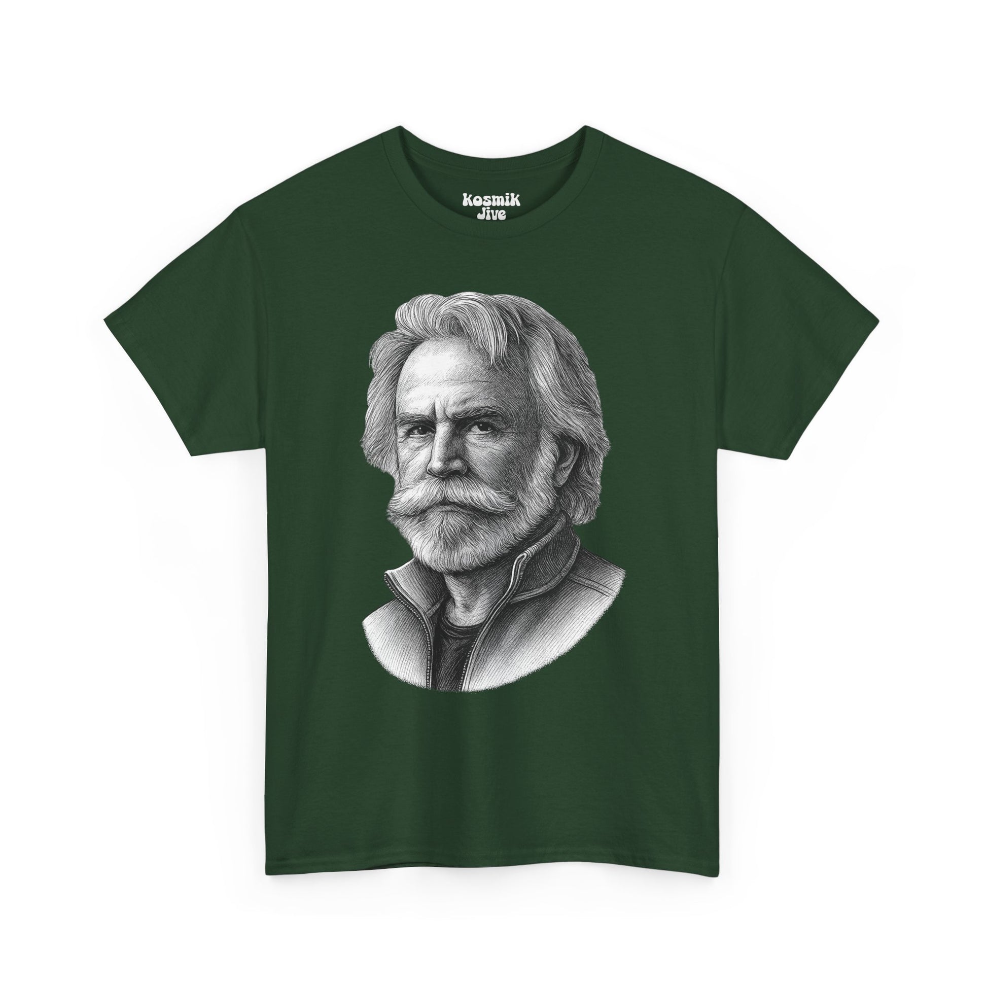 A detailed monochrome portrait of Bob Weir, reflecting his calm presence and the improvisational spirit of the Grateful Dead. A refined design for Deadheads who appreciate the band’s timeless energy.