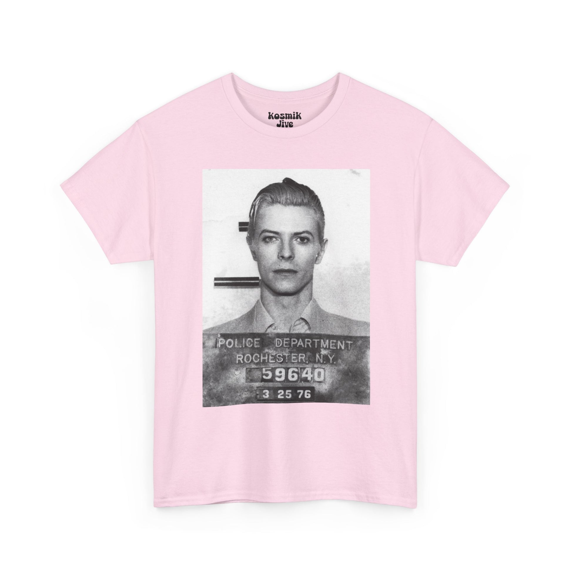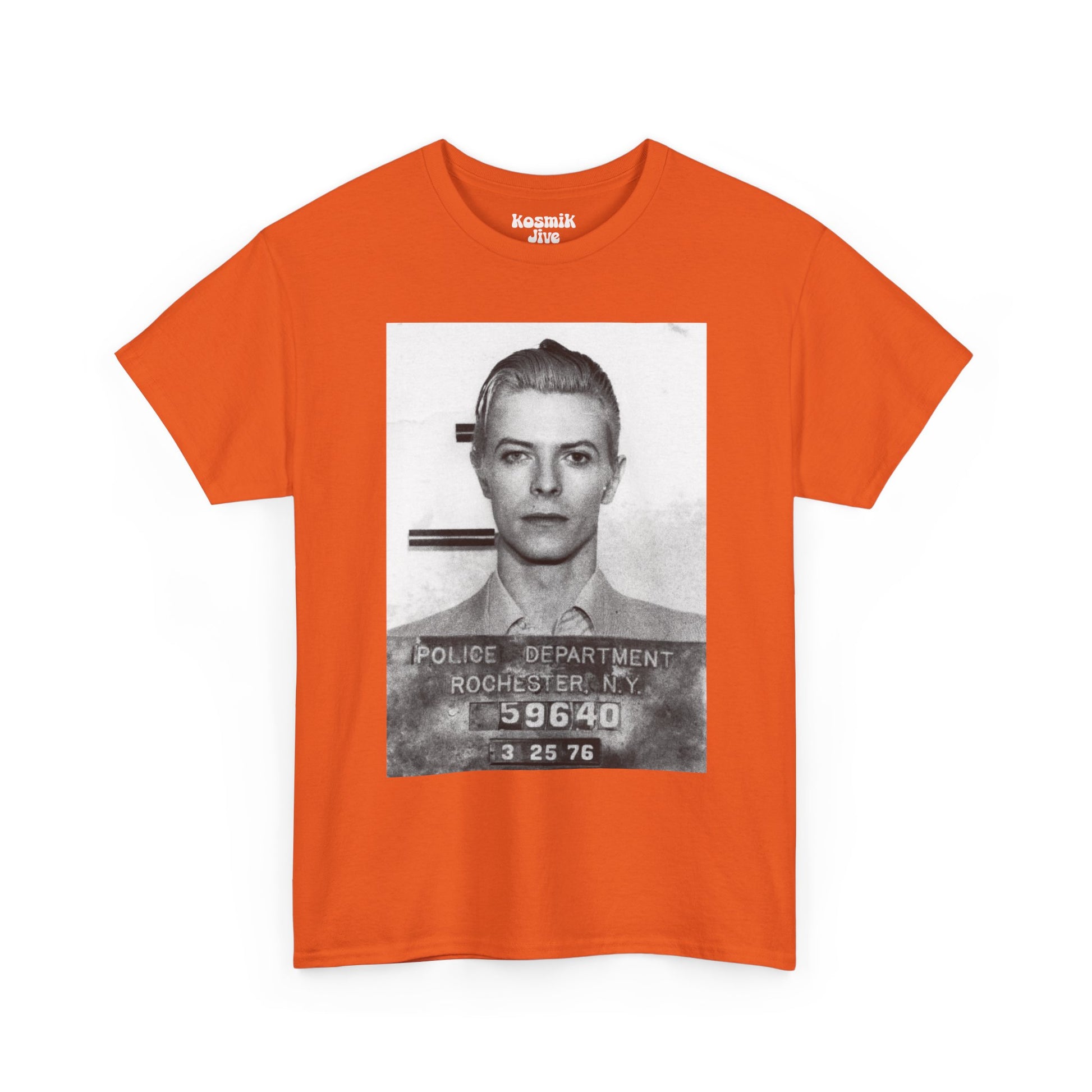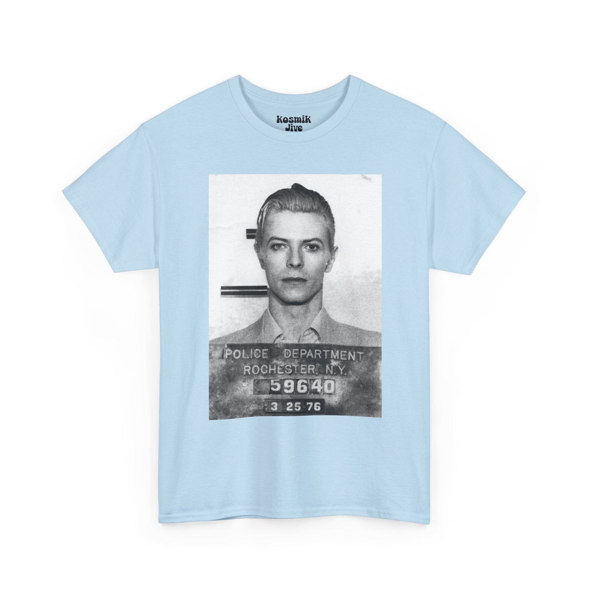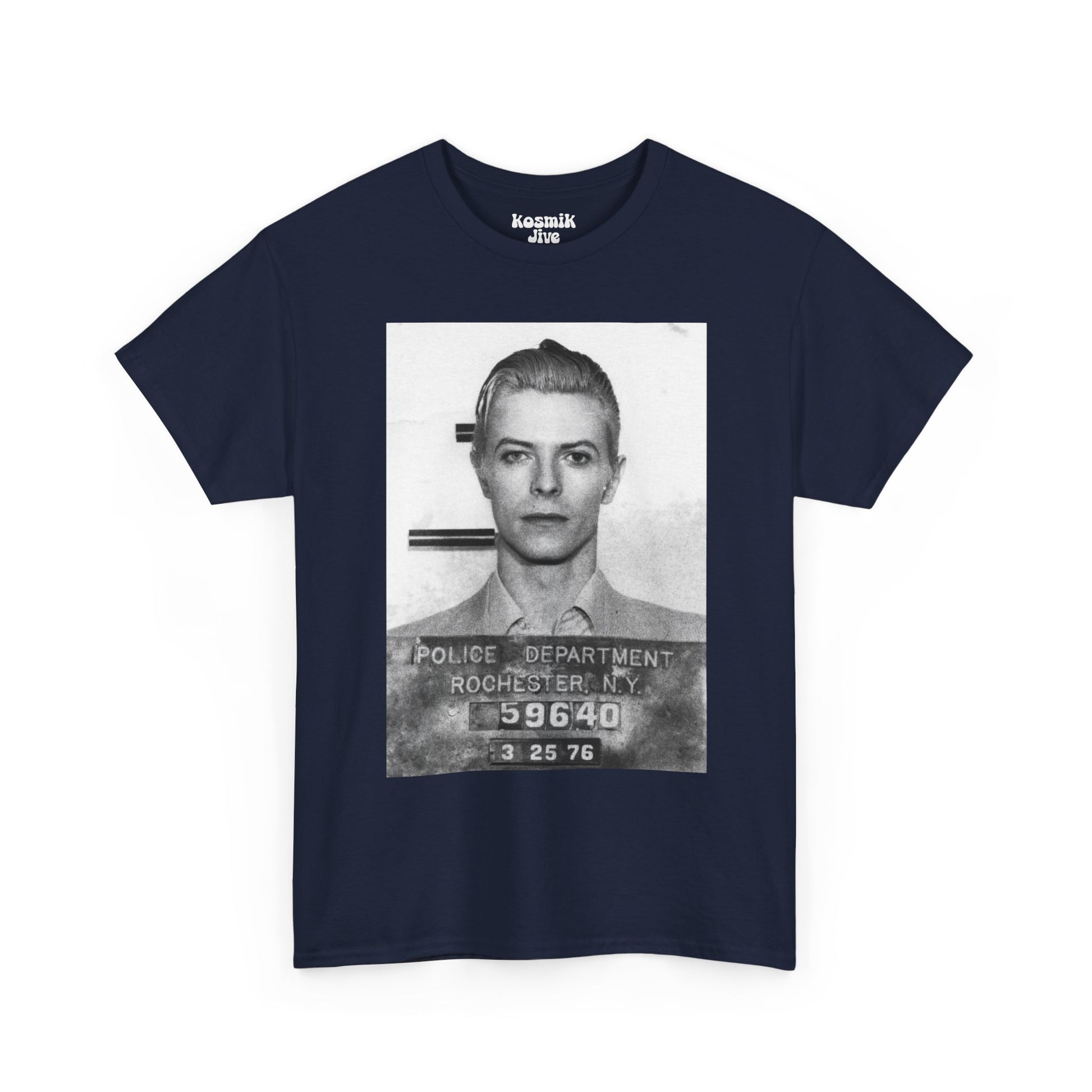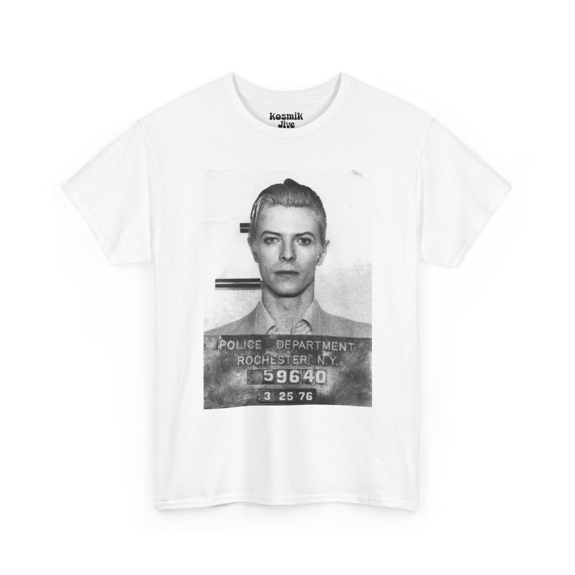 An arrest photo that became part of rock mythology. This tee features David Bowie’s 1976 mugshot, capturing a rare, vulnerable moment during one of the most intense periods of his career. Minimal, haunting, and historically charged — a must-have for Bowie collectors.