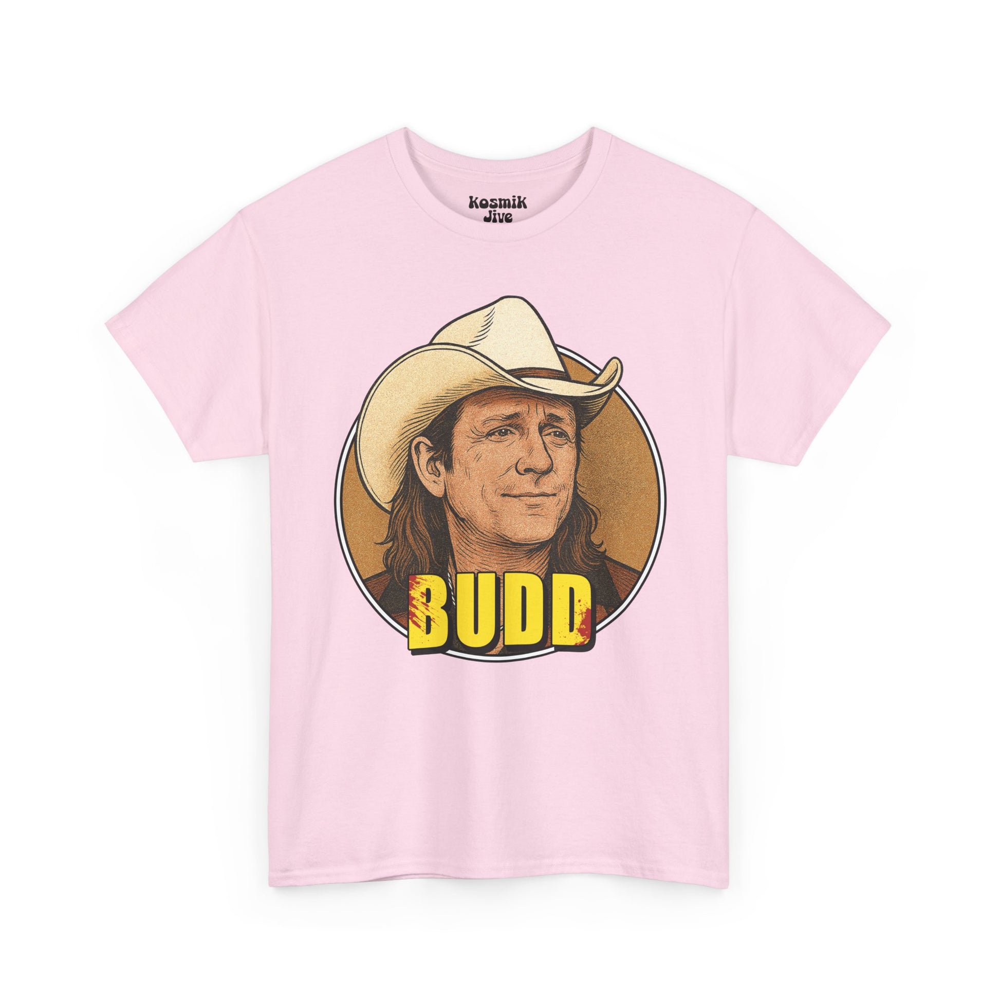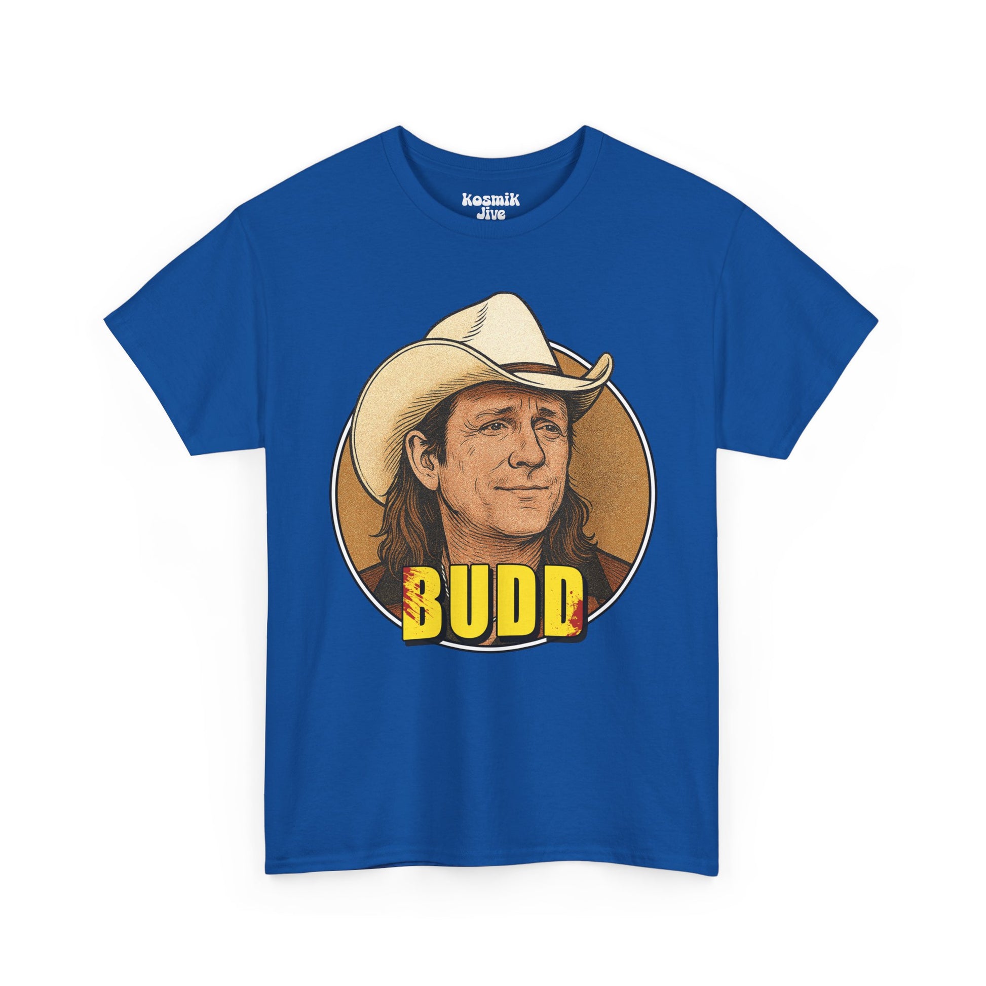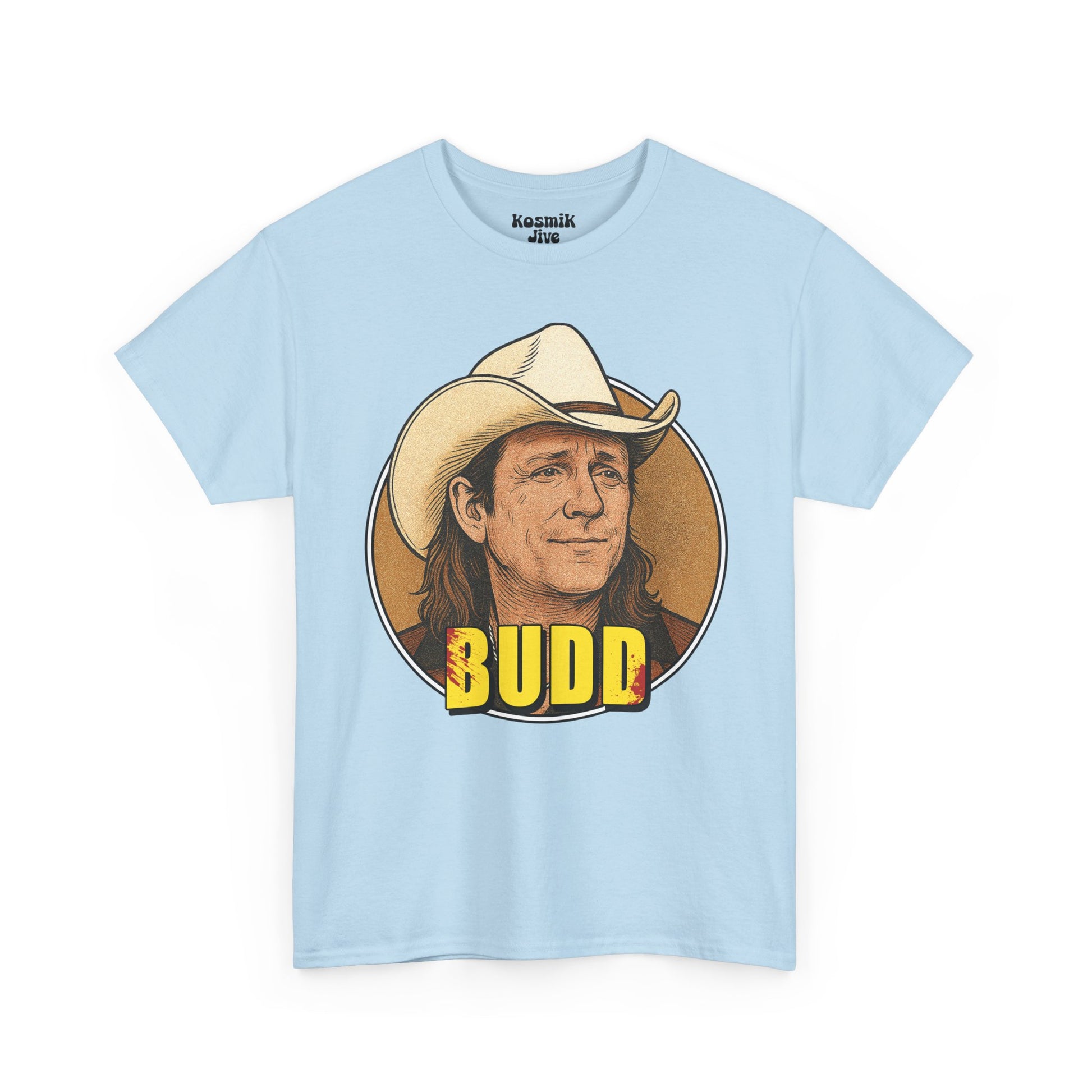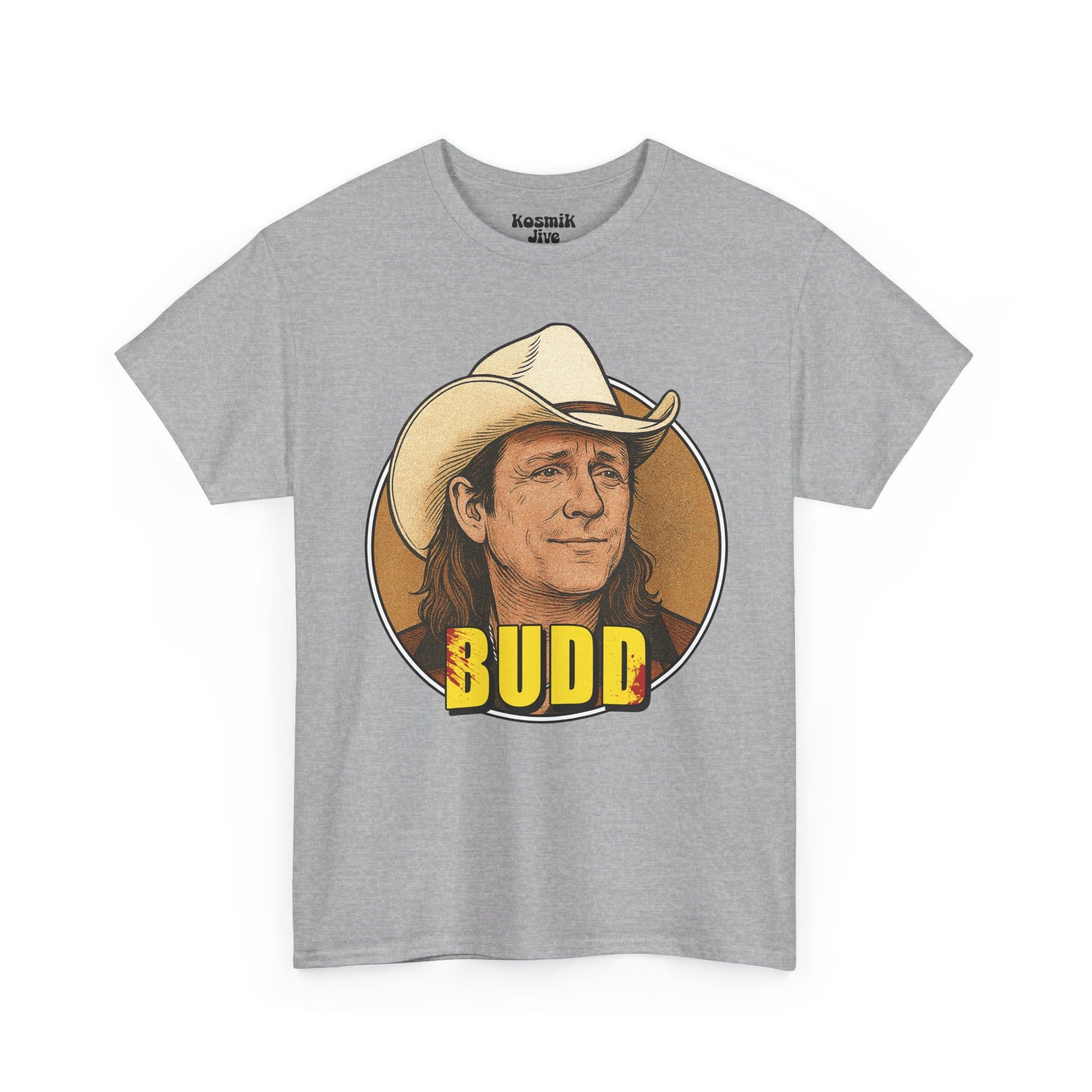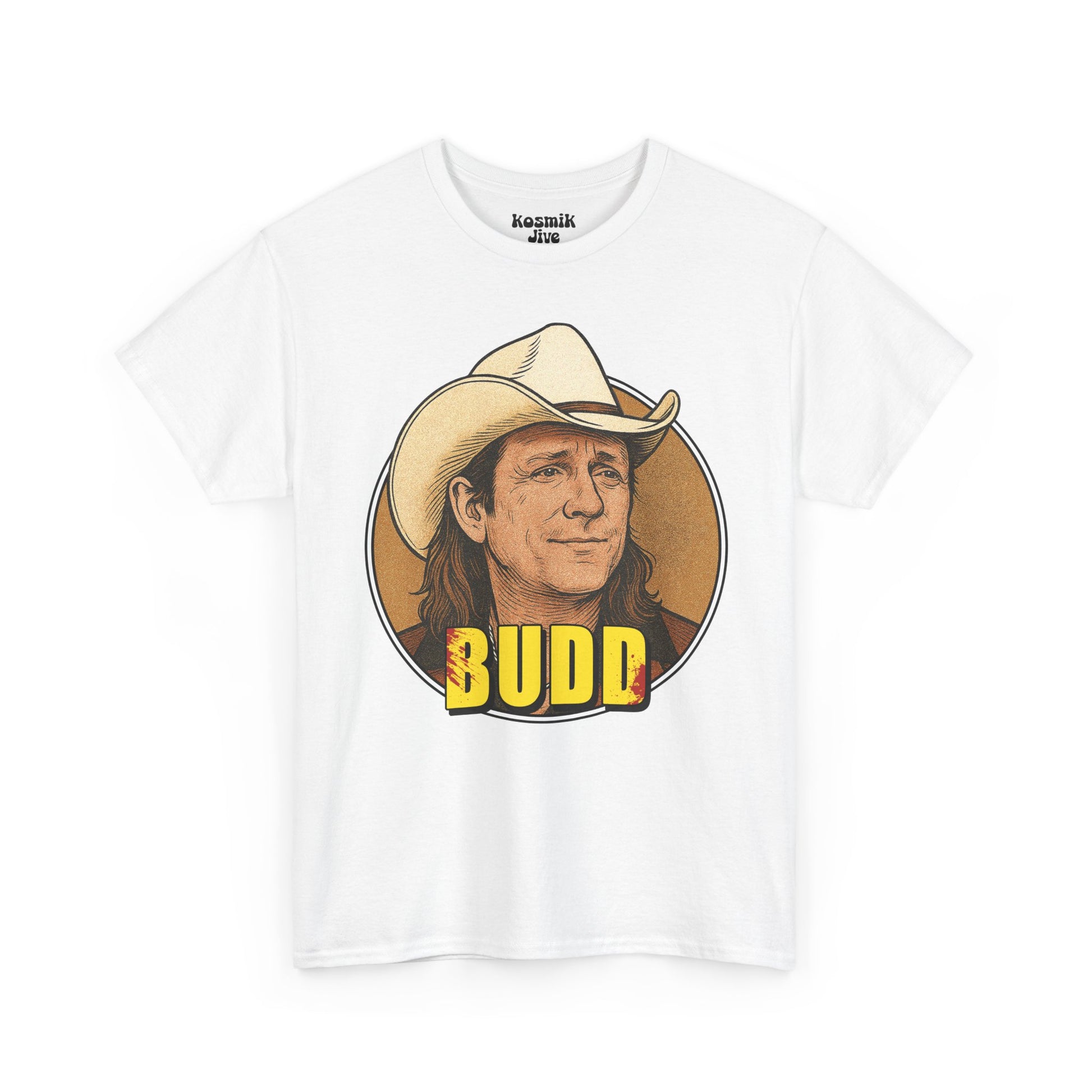 A rustic, western-inspired portrait of Michael Madsen as Budd — rendered with warm tones, hand-drawn texture, and classic frontier poster aesthetics. This design celebrates the gritty, soulful vibe of Budd’s character, blending modern cult cinema with vintage Americana. A must-have for movie fans who love stylized character art.