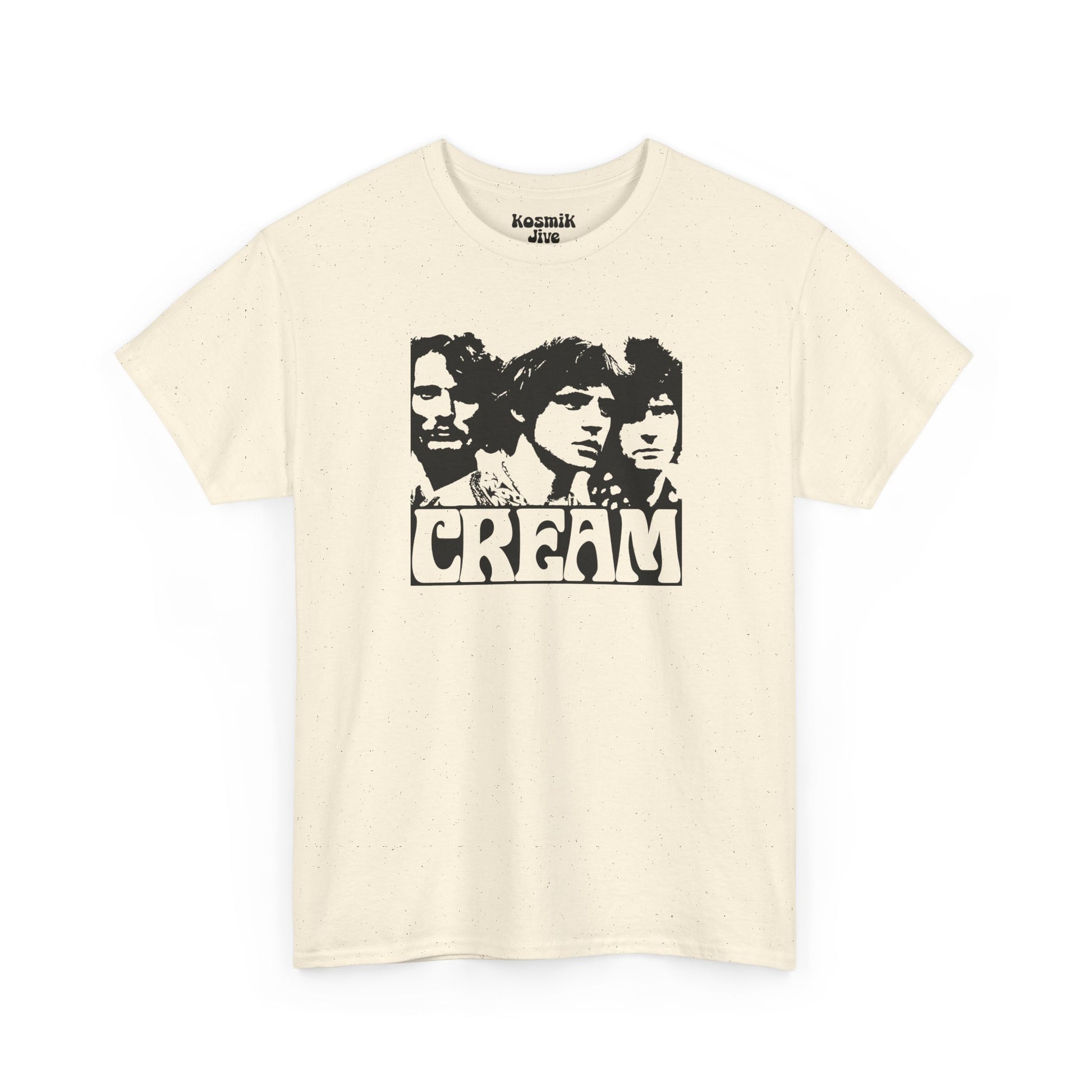 Cream t-shirt featuring the power trio and the band’s lettering. This design was also worn by Ginger Baker during the legendary 2005 reunion shows at Madison Square Garden. A must-have for fans of timeless rock history and vintage style.