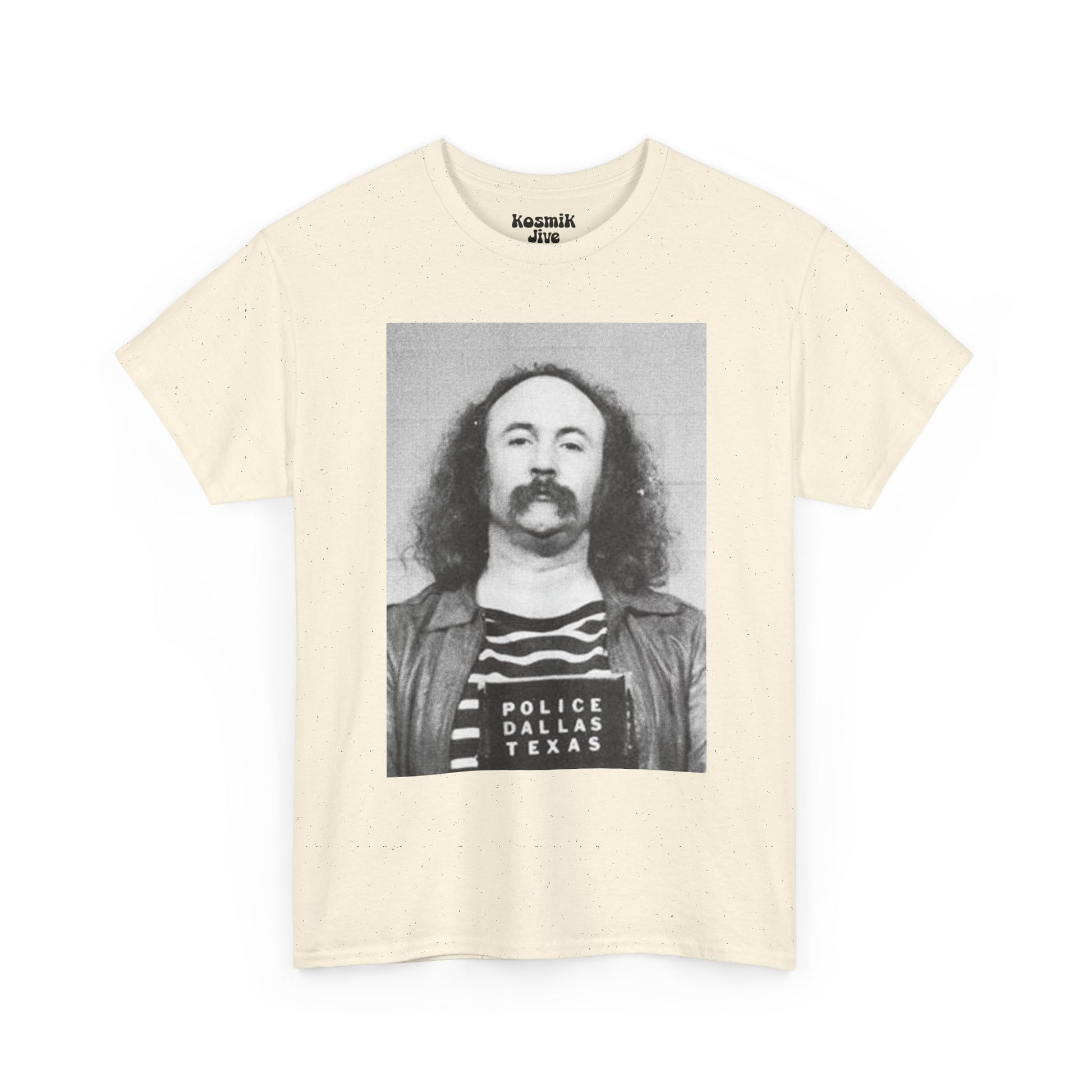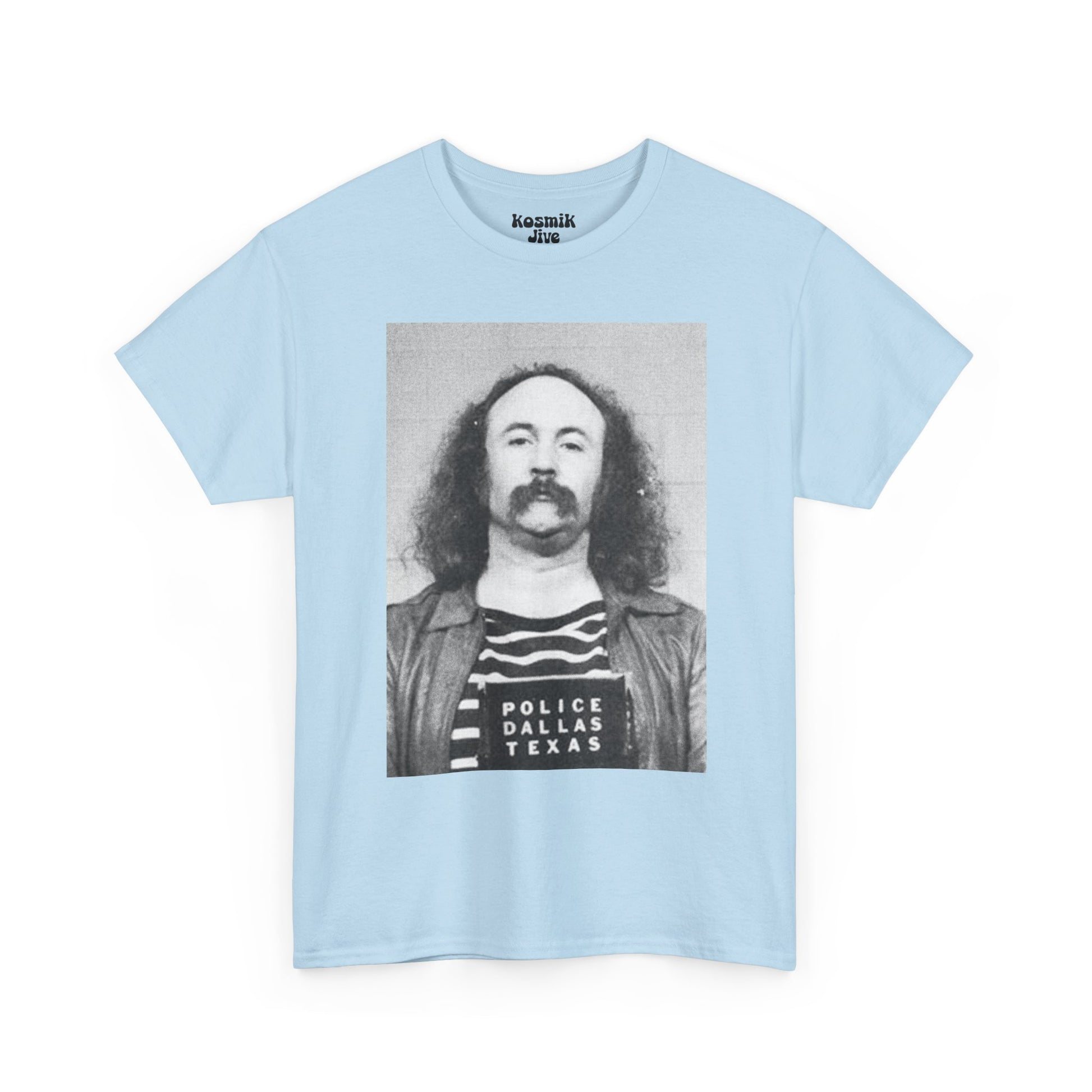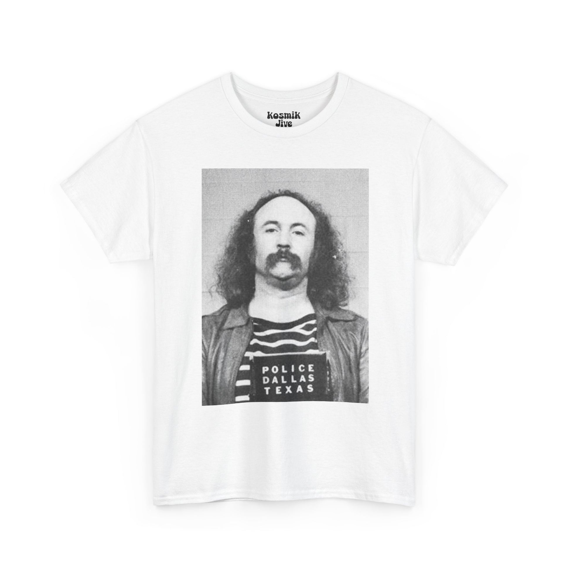 A striking portrait drawn from one of the most iconic mugshots in rock history. This David Crosby tee captures the raw, unfiltered spirit of the late 60s counterculture — imperfect, rebellious, and deeply human. A powerful piece for fans of CSNY and classic rock history.