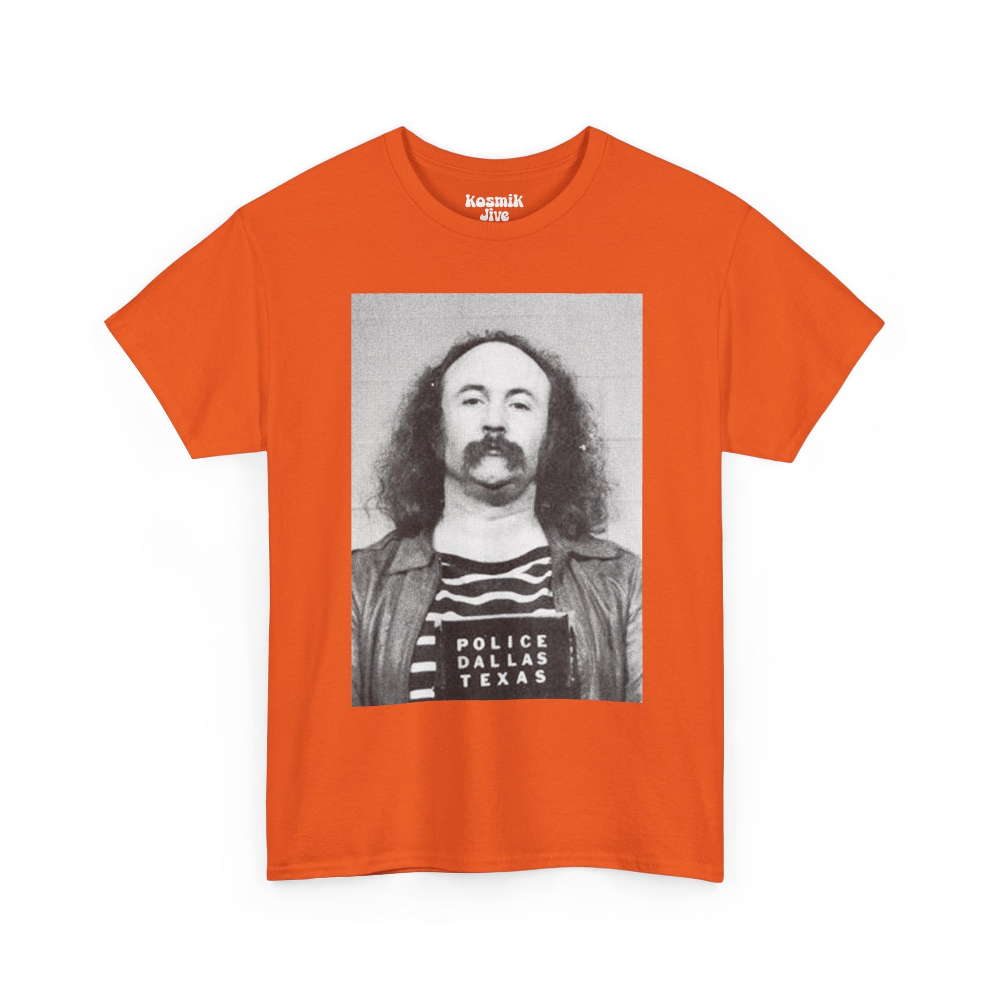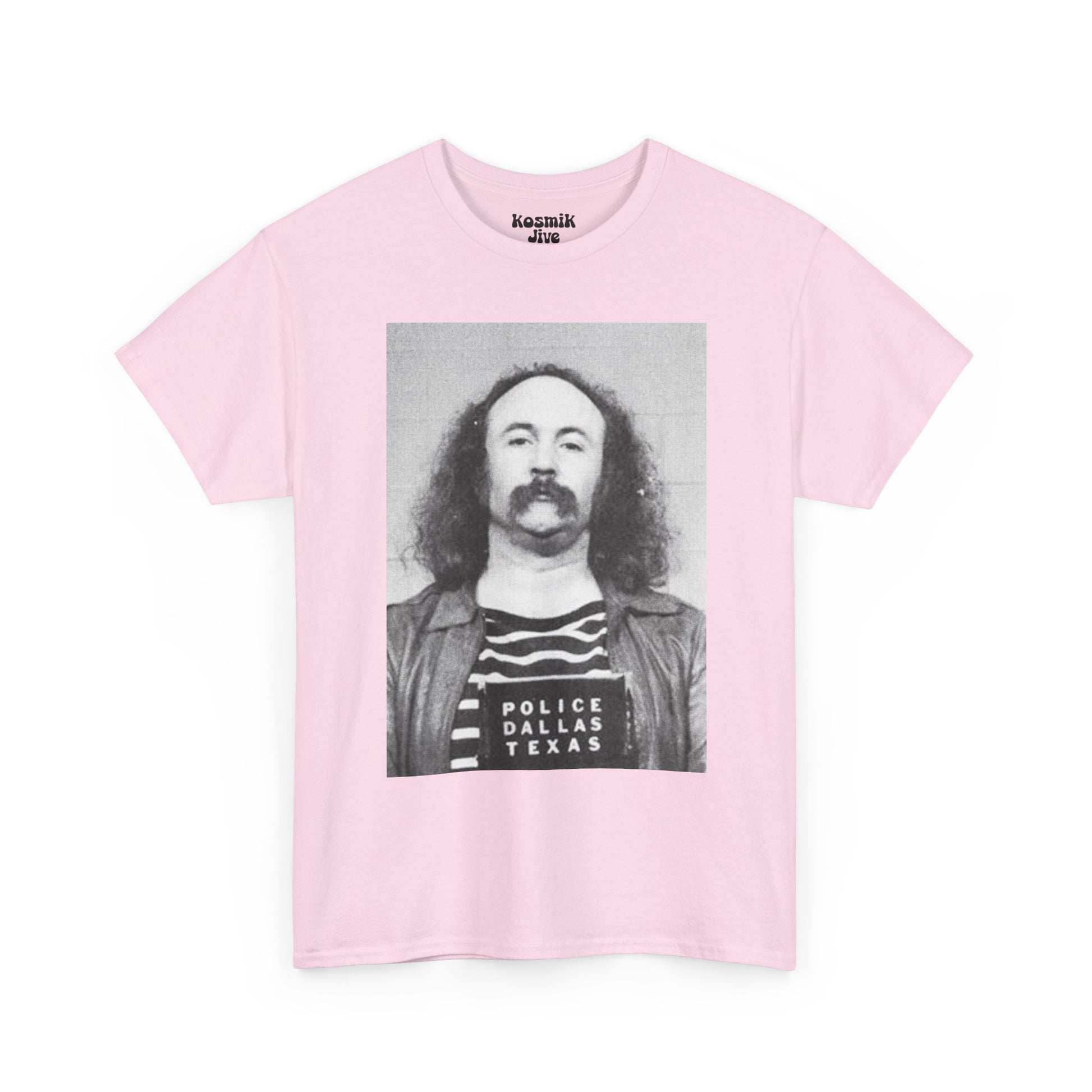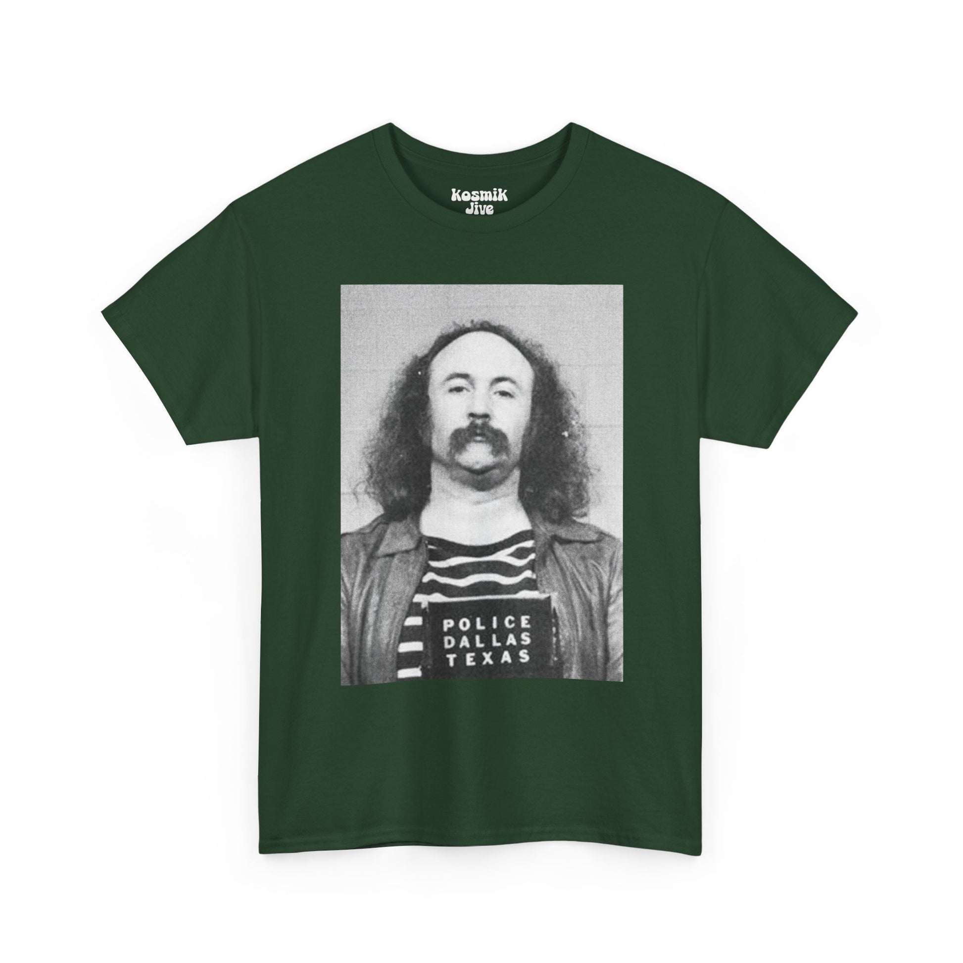 A striking portrait drawn from one of the most iconic mugshots in rock history. This David Crosby tee captures the raw, unfiltered spirit of the late 60s counterculture — imperfect, rebellious, and deeply human. A powerful piece for fans of CSNY and classic rock history.
