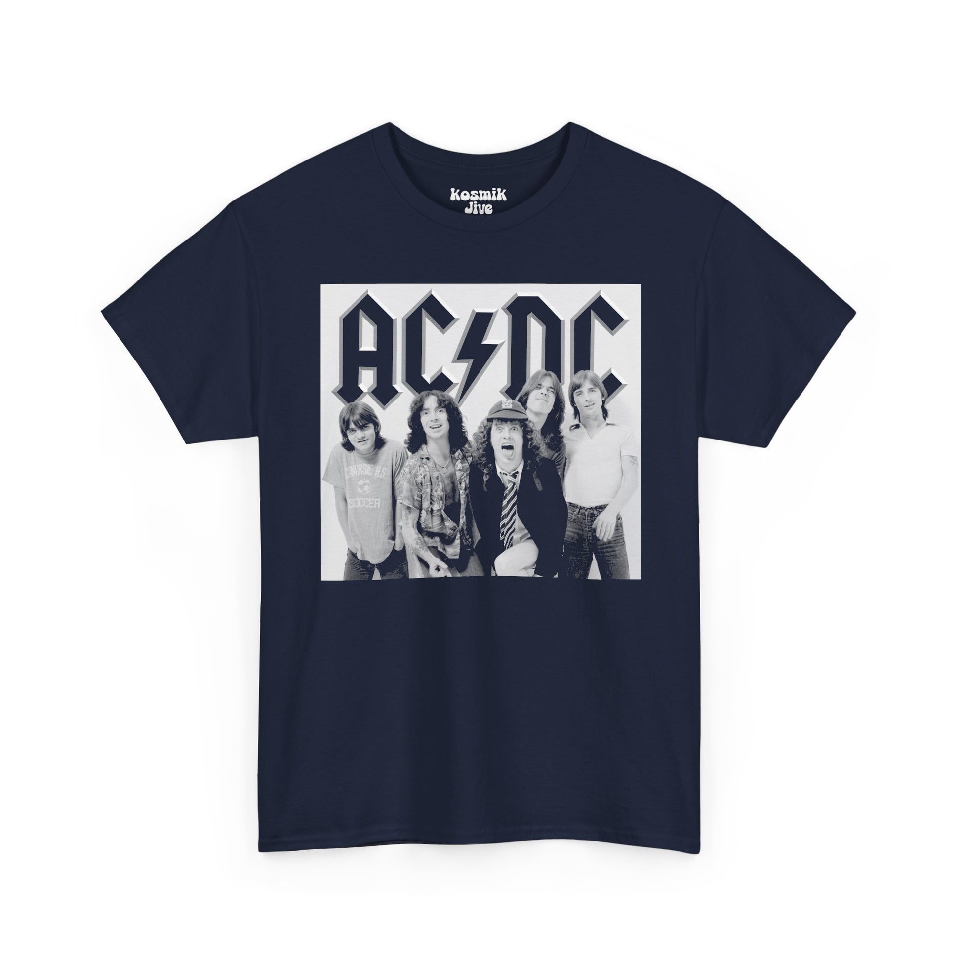 A raw, energetic snapshot of AC/DC in their early years — loud, young, and unstoppable. Featuring the classic lineup in a black-and-white photo paired with the bold AC/DC logo. A perfect tee for fans who love the band’s no-frills, high-voltage beginnings.