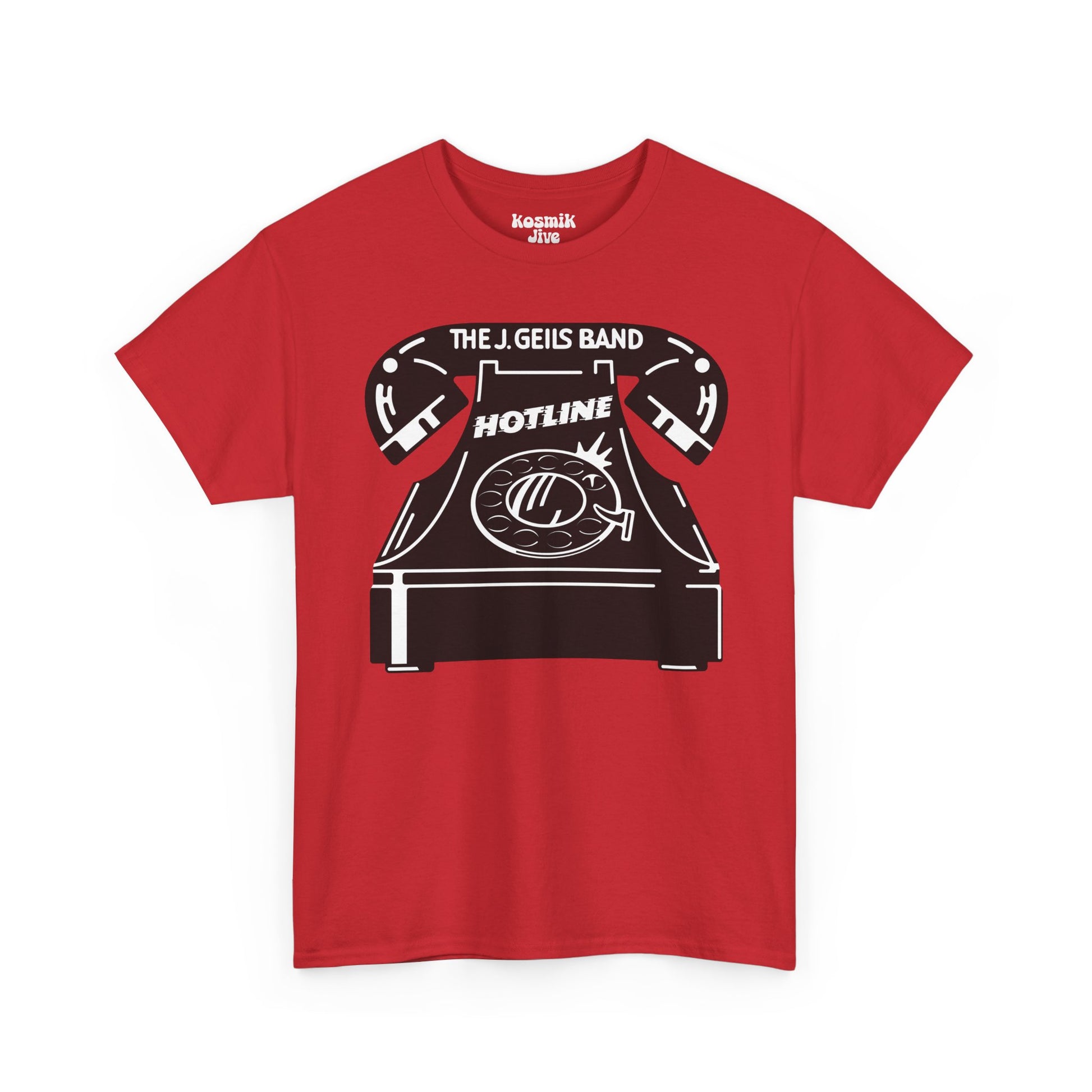 Dial into the groove. This bold red tee pays tribute to Hotline (1975), one of The J. Geils Band’s most electric records — where blues rock met pure showmanship. With its vintage rotary phone artwork and punchy black-and-white contrast, it’s a wearable shout-out to the golden age of rock ‘n’ roll.