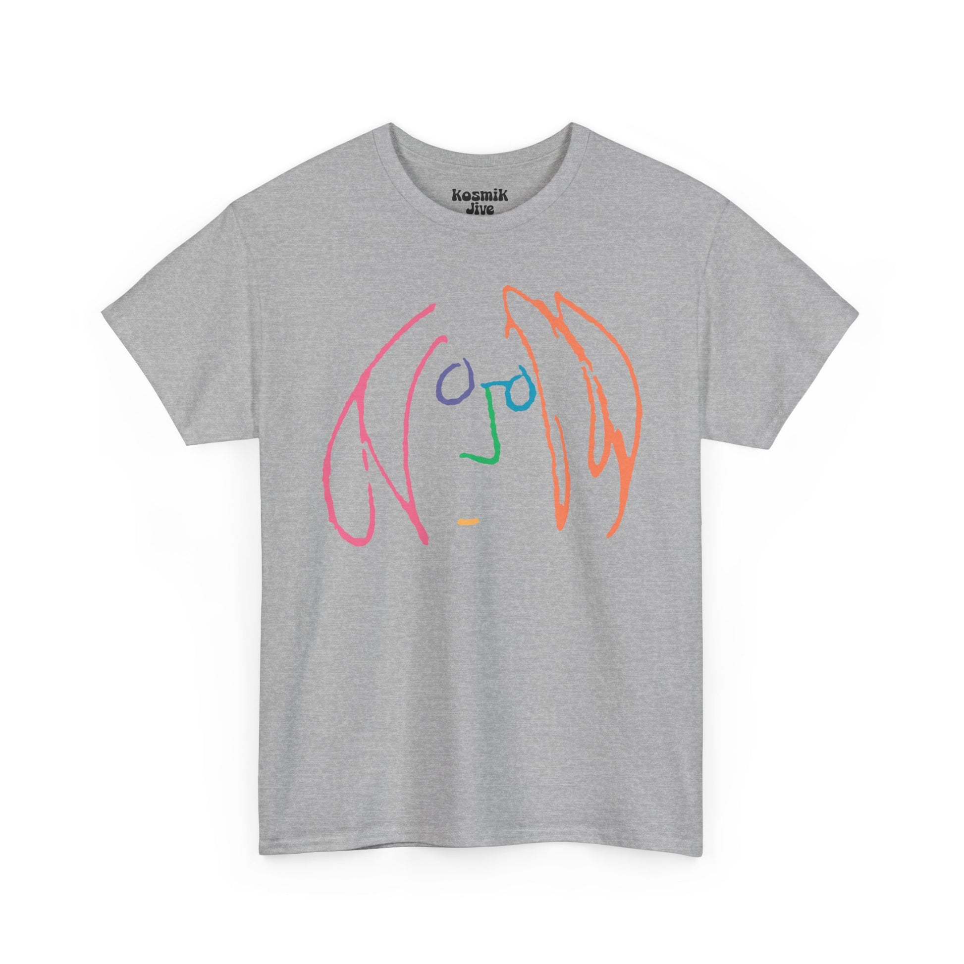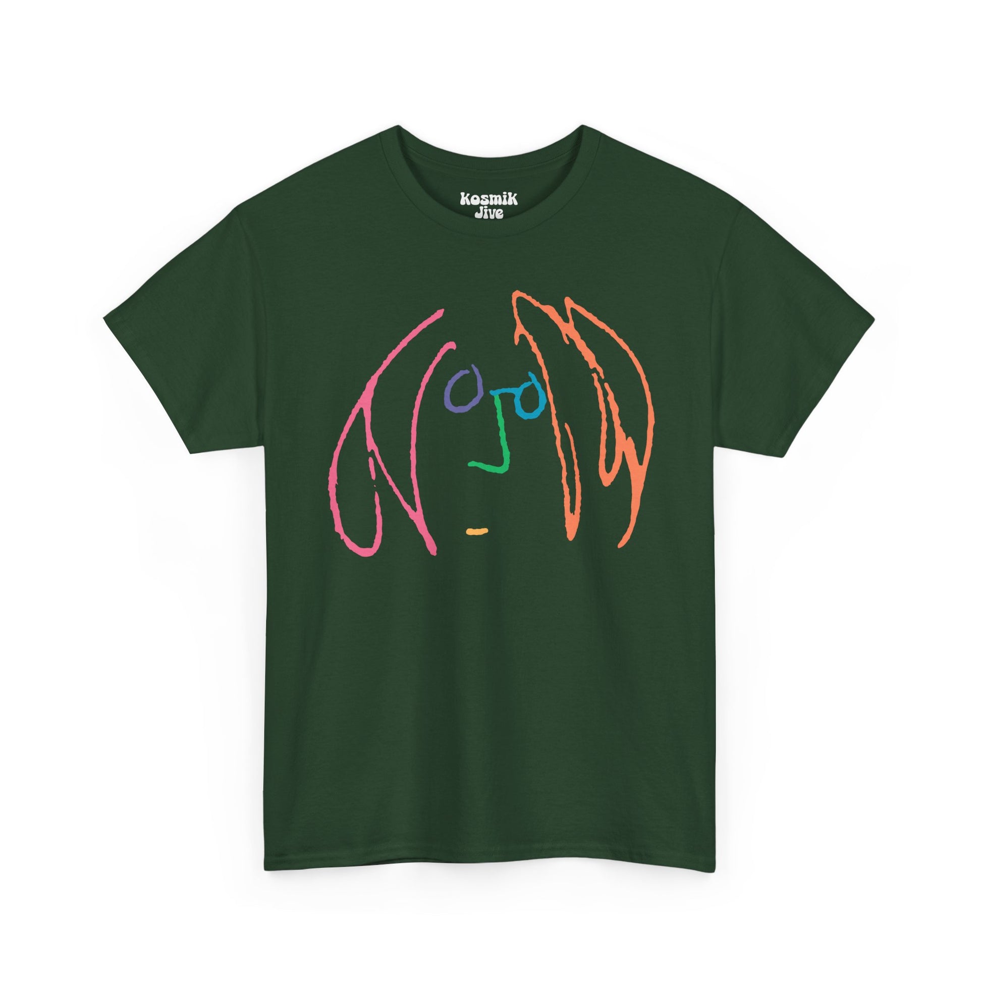 A minimalist tribute inspired by John Lennon’s own hand-drawn self-portraits. This design recreates the loose, expressive line style that became synonymous with Lennon’s visual art, presented here in soft, playful colors. Simple, intimate, and timeless — a wearable piece of music and art history.