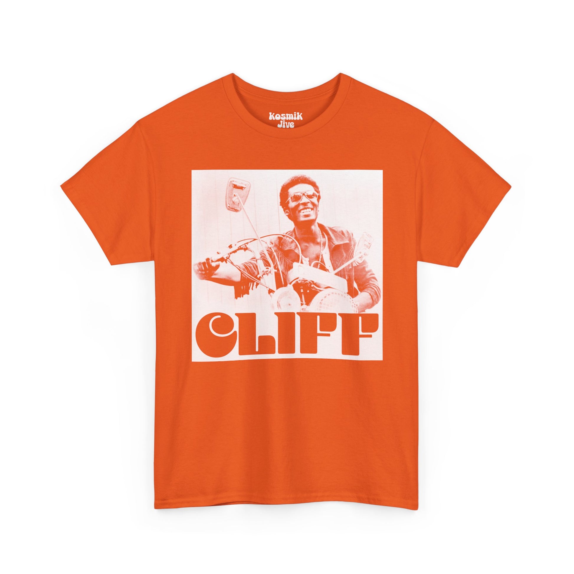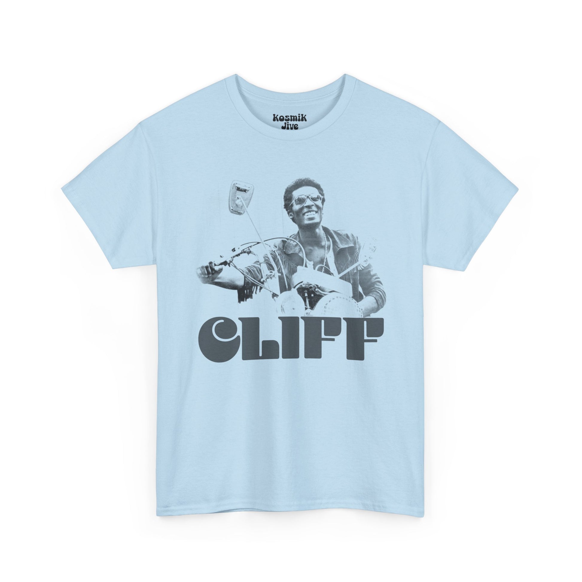 This design features Cliff on a vintage motorcycle, photographed with the effortless cool that helped define an entire era of Jamaican cinema and reggae culture.