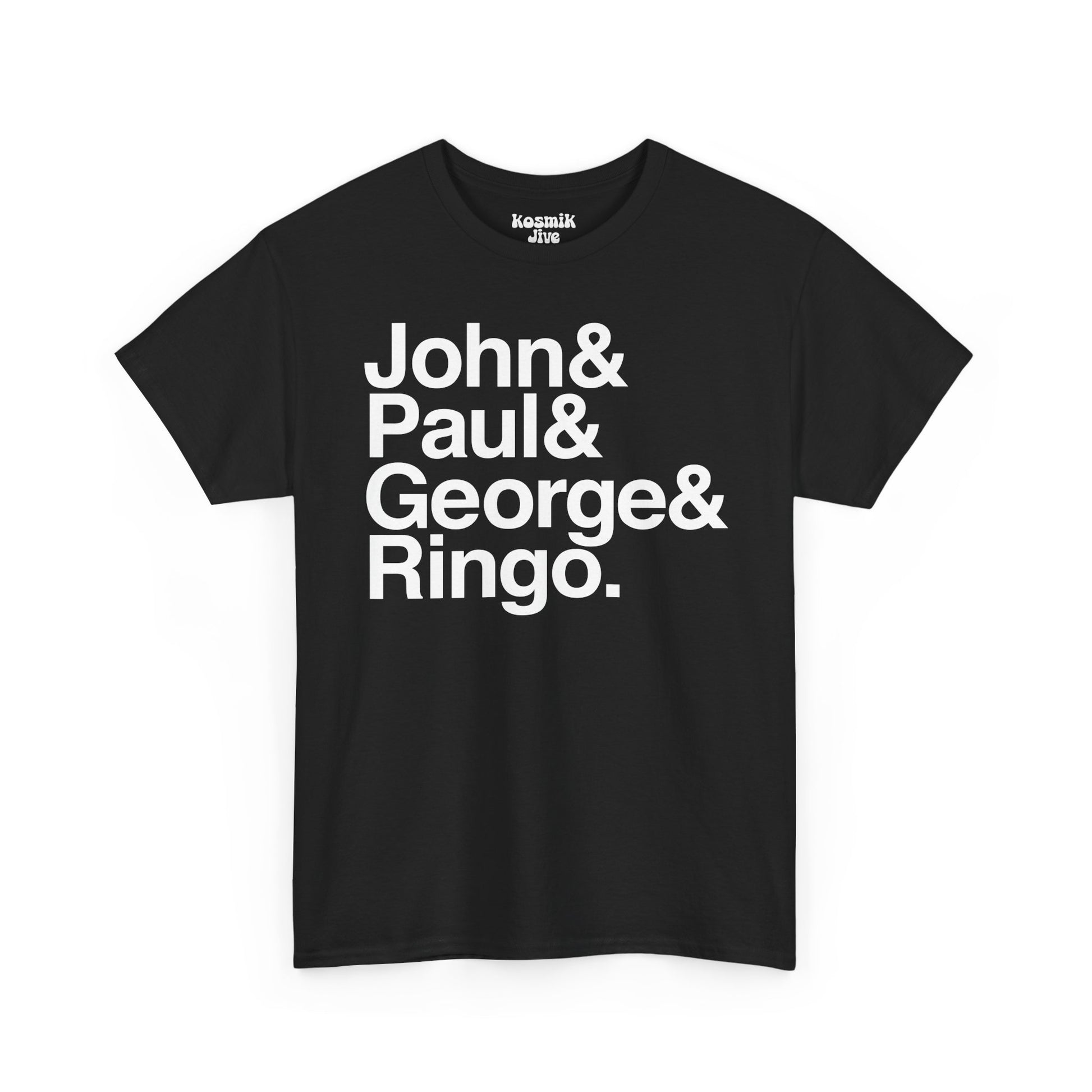 A minimalist tribute to the Beatles, featuring the lineup. The bold typography design celebrates the enduring power of one of the greatest rock bands of all time. Printed on a cotton tee, this shirt is perfect for fans who want a clean, modern take on Stones history.