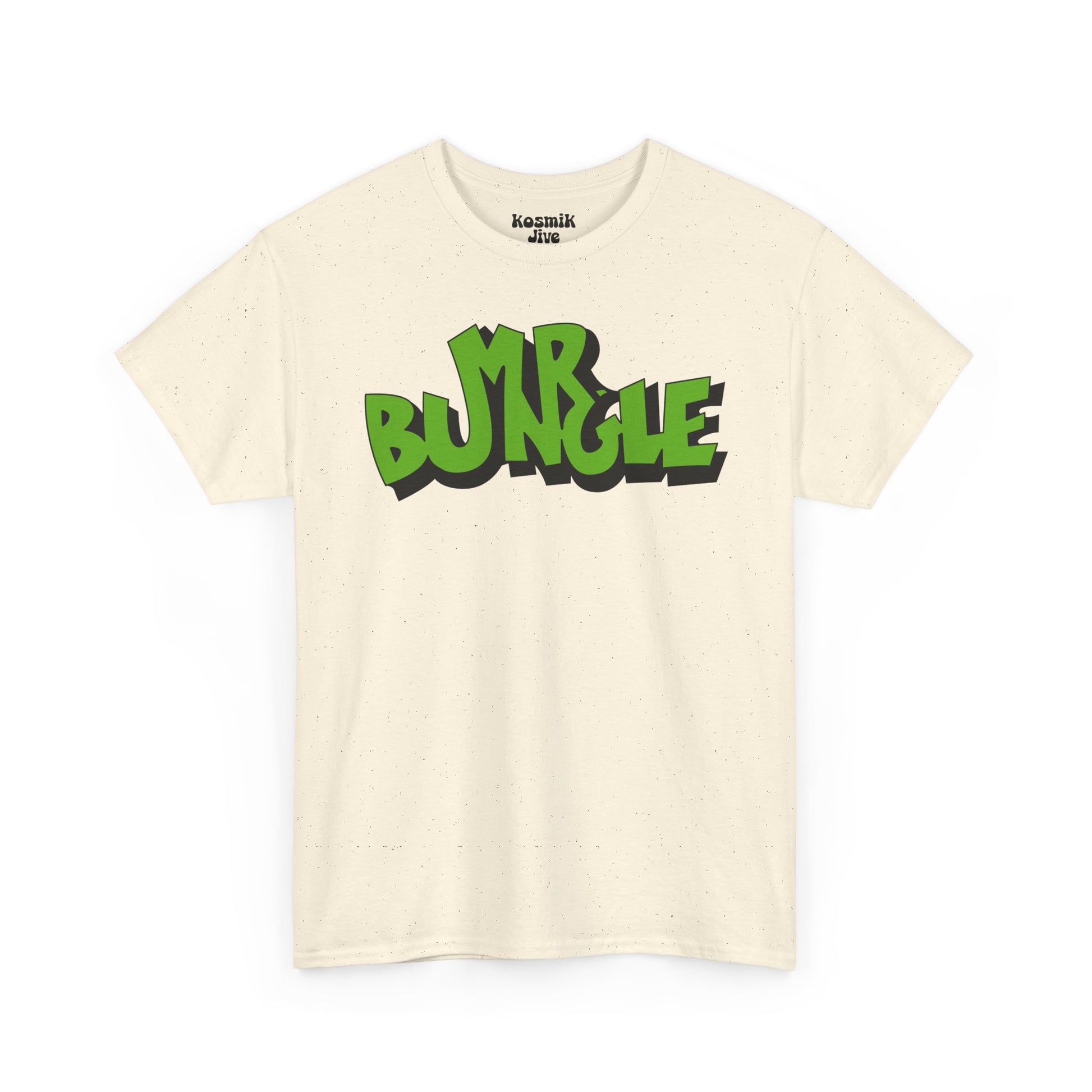 A fresh and playful take on the Mr. Bungle identity. This white tee features a bold graffiti-inspired logo in green and black for a high-contrast, street-style aesthetic. Clean, fun, and unmistakably Bungle.