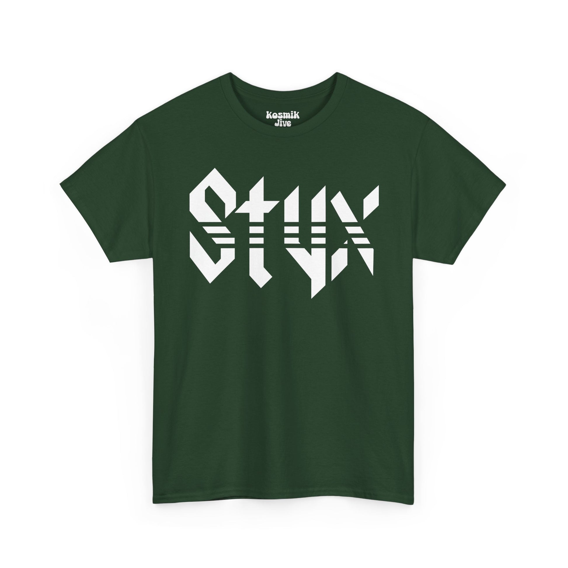 A sharp and modern tribute to Styx, featuring a geometric reinterpretation of the band’s classic logo. Clean black shapes create a bold visual rhythm, echoing the progressive rock energy that defined their sound. Minimalist, stylish and unmistakably retro-modern — perfect for longtime fans and collectors of 70s rock.