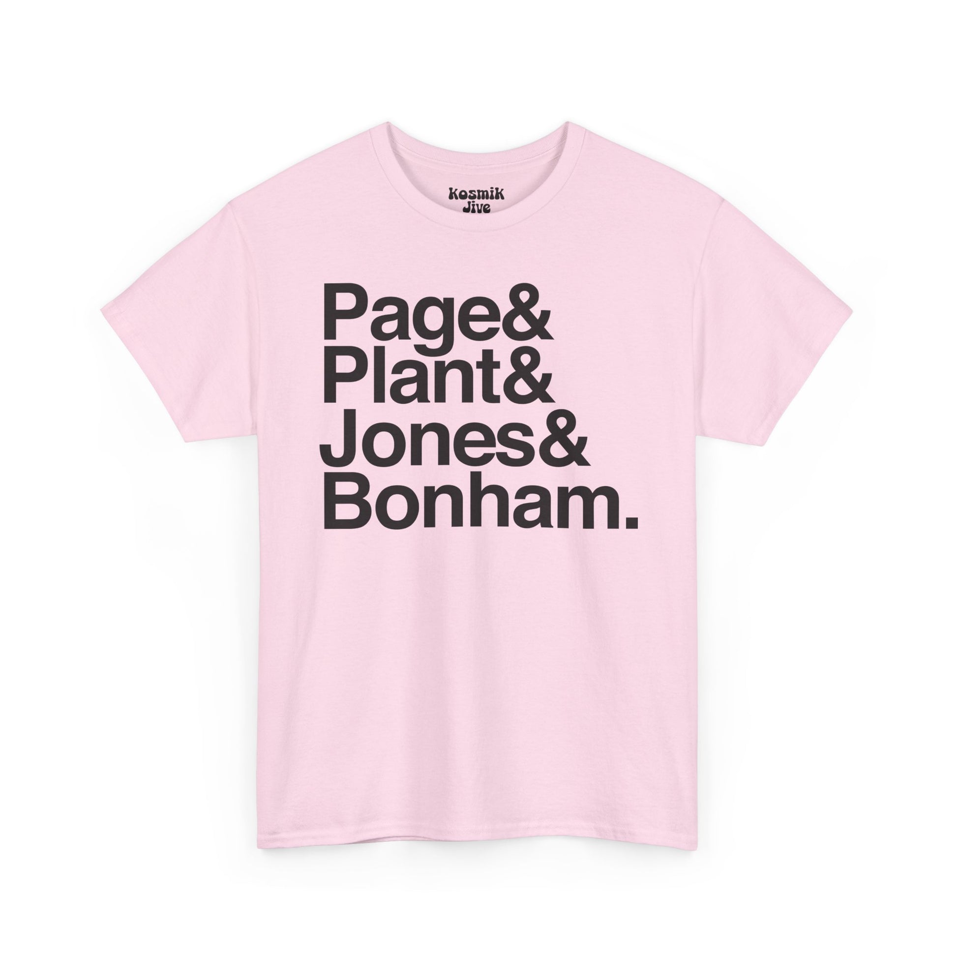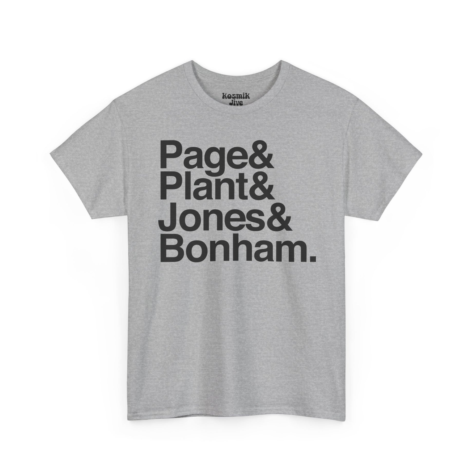 A minimalist tribute to the Zeppelin, featuring the classic lineup. The bold typography design celebrates the enduring power of one of the greatest rock bands of all time. Printed on a cotton tee, this shirt is perfect for fans who want a clean, modern take on Zepp history.
