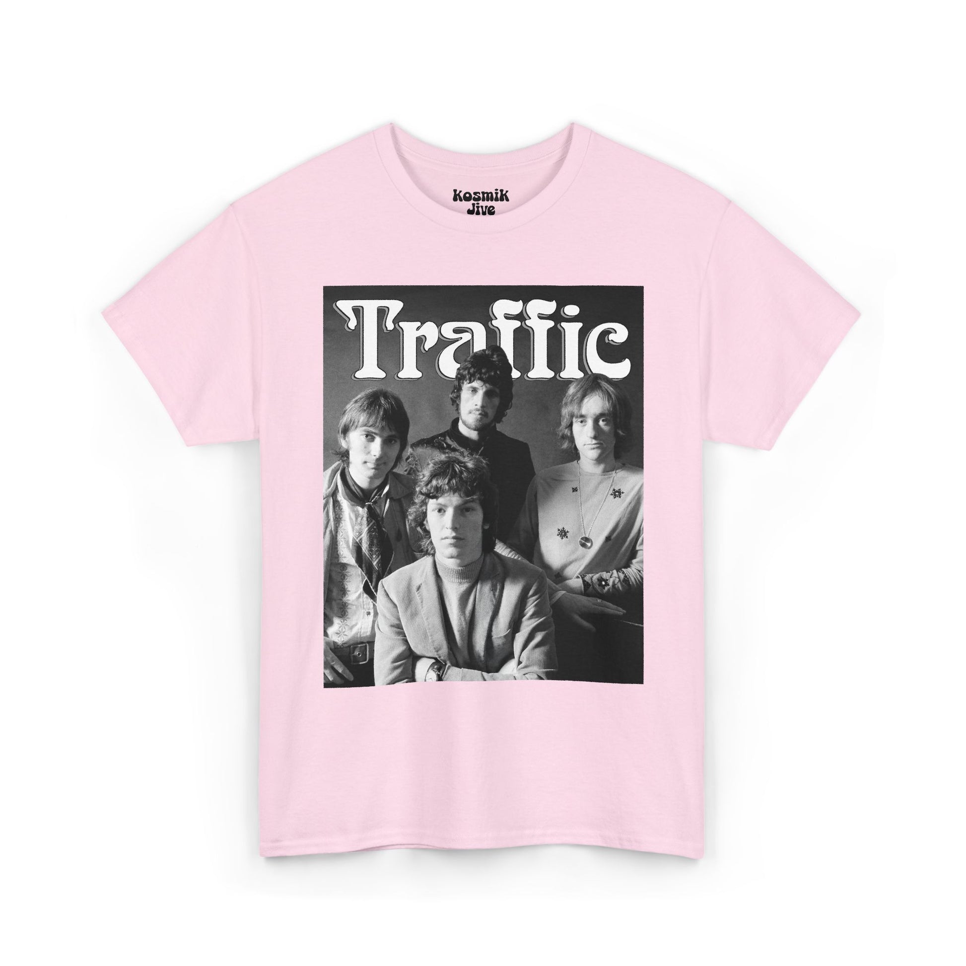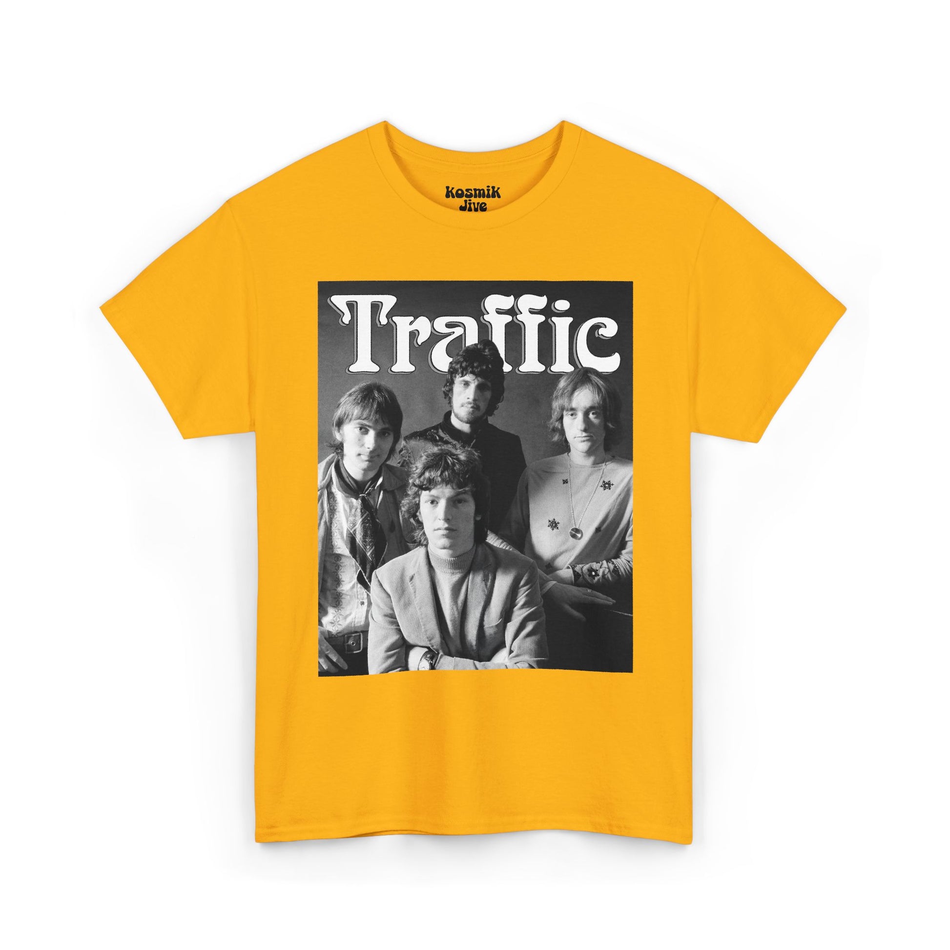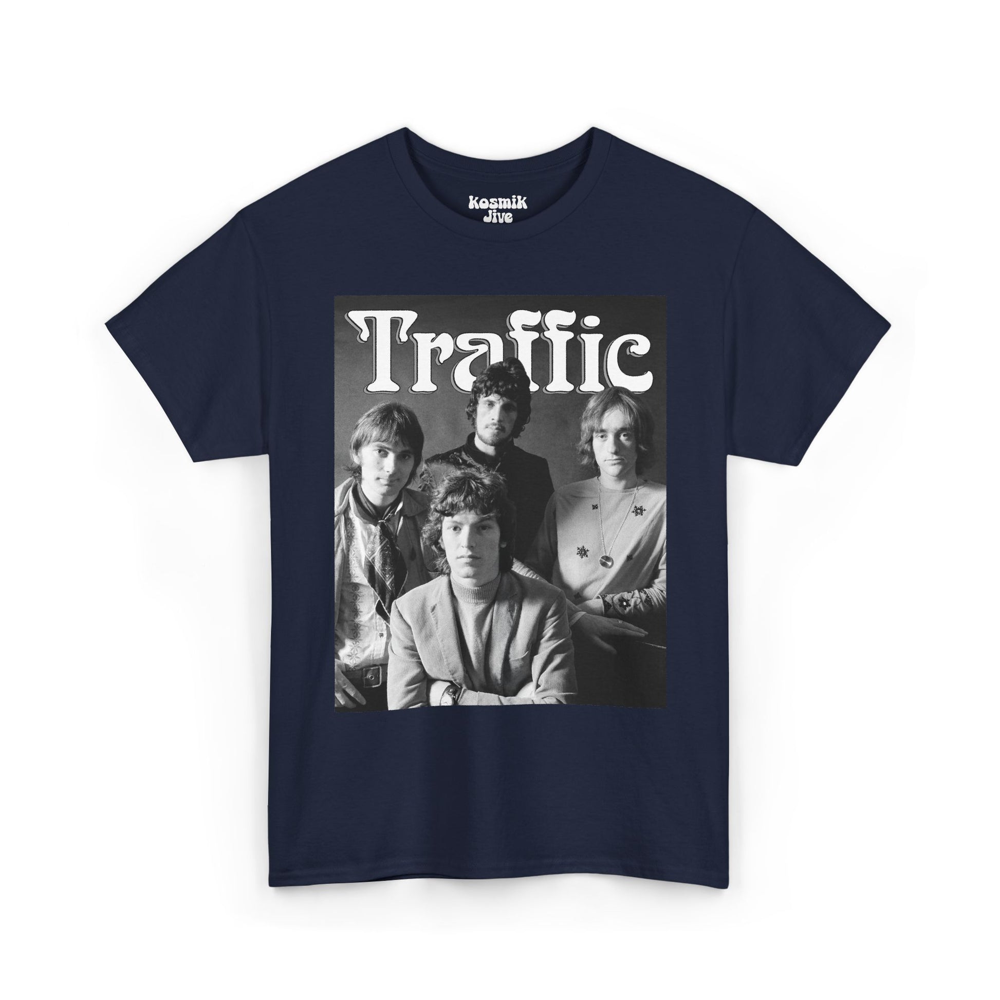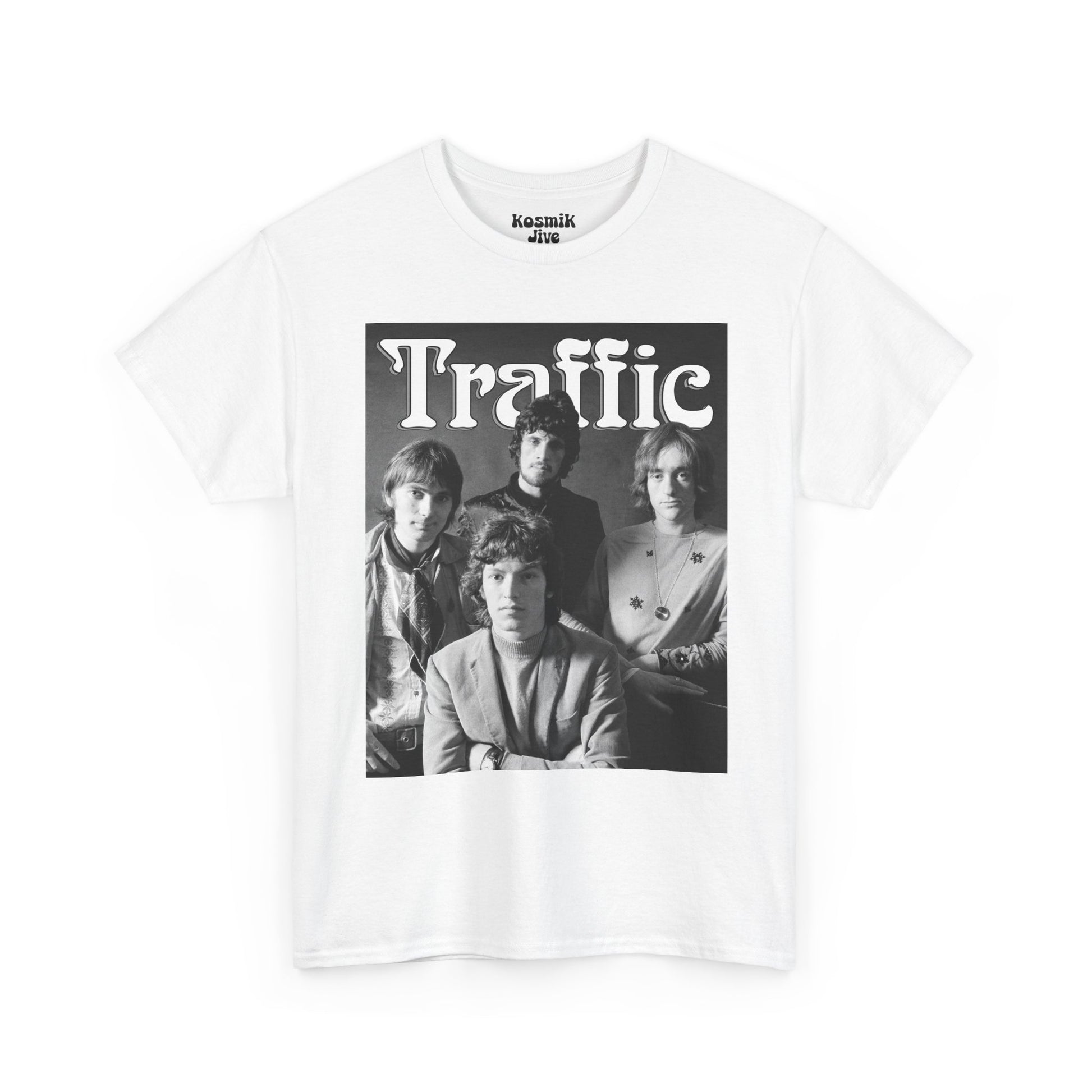 A vintage-inspired tribute to Traffic’s classic lineup. Featuring a bold black and white band photo, this design captures the soulful, jazz-infused and experimental essence that made Traffic one of the most influential bands of the 70s rock scene.