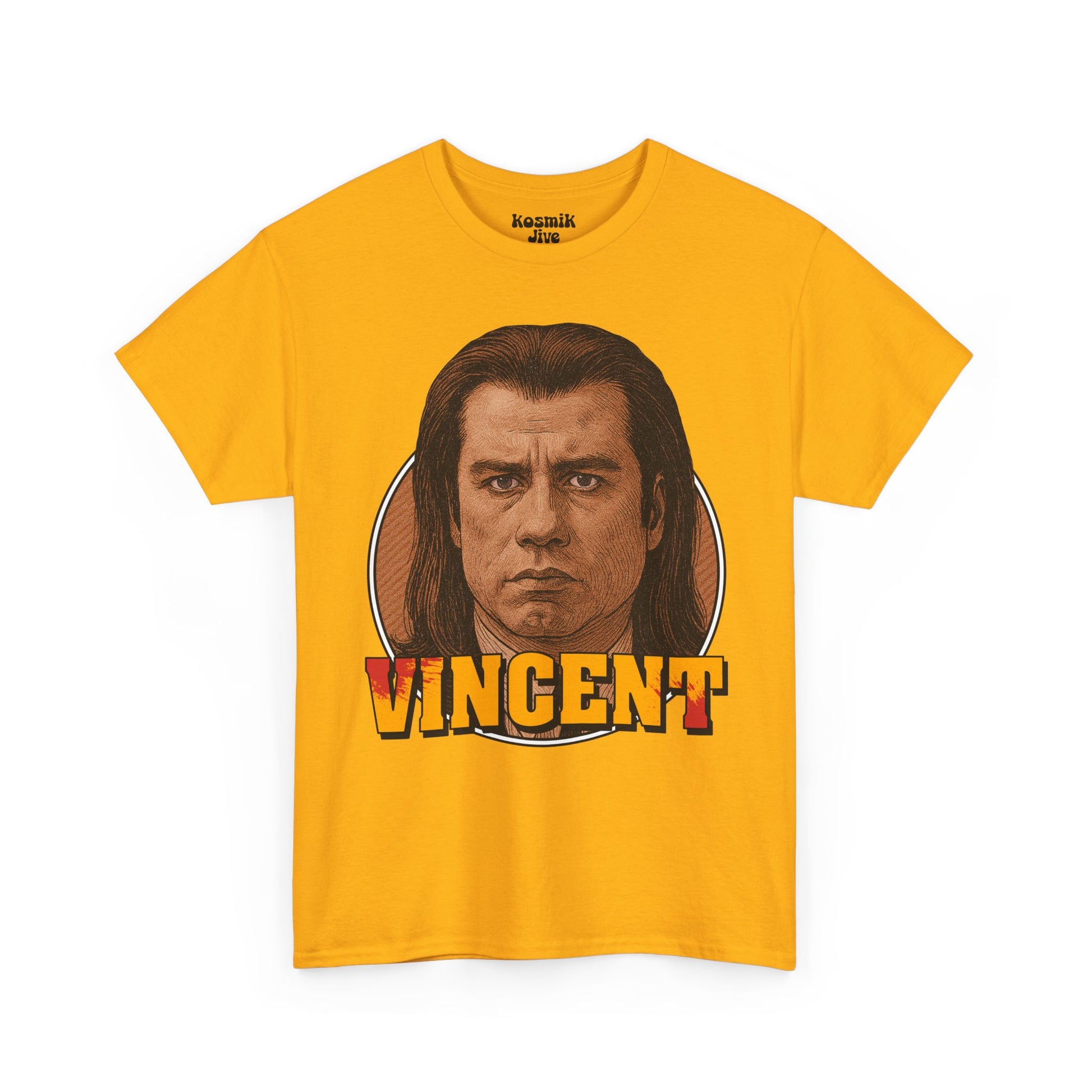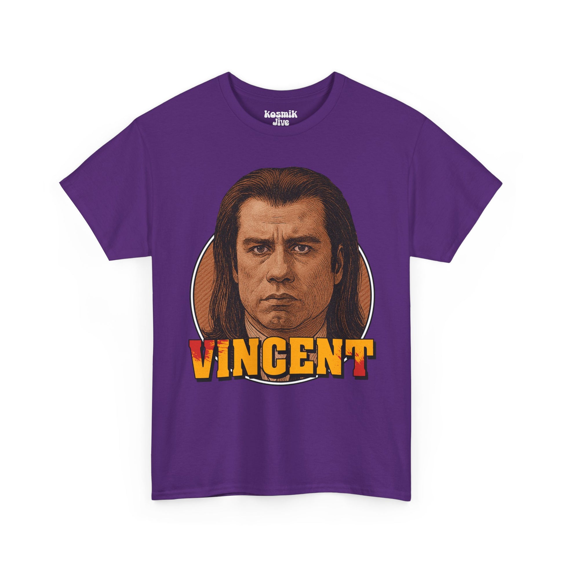 A bold retro-style portrait inspired by one of cinema’s coolest and most recognizable characters. This design captures Vincent Vega with intense expression, vintage tones, and crisp linework reminiscent of classic ’90s movie posters.