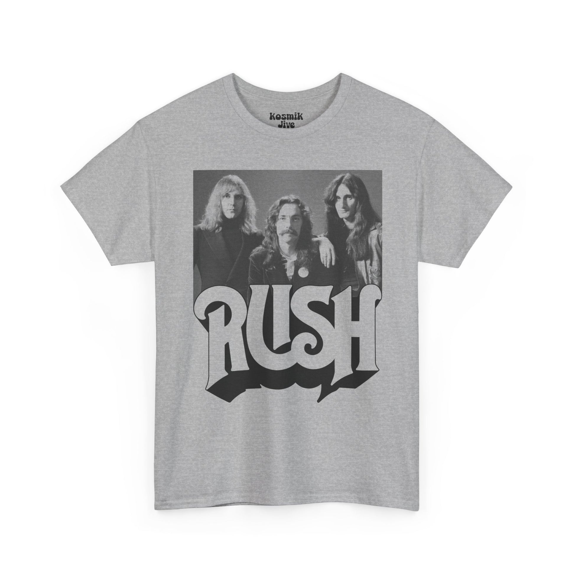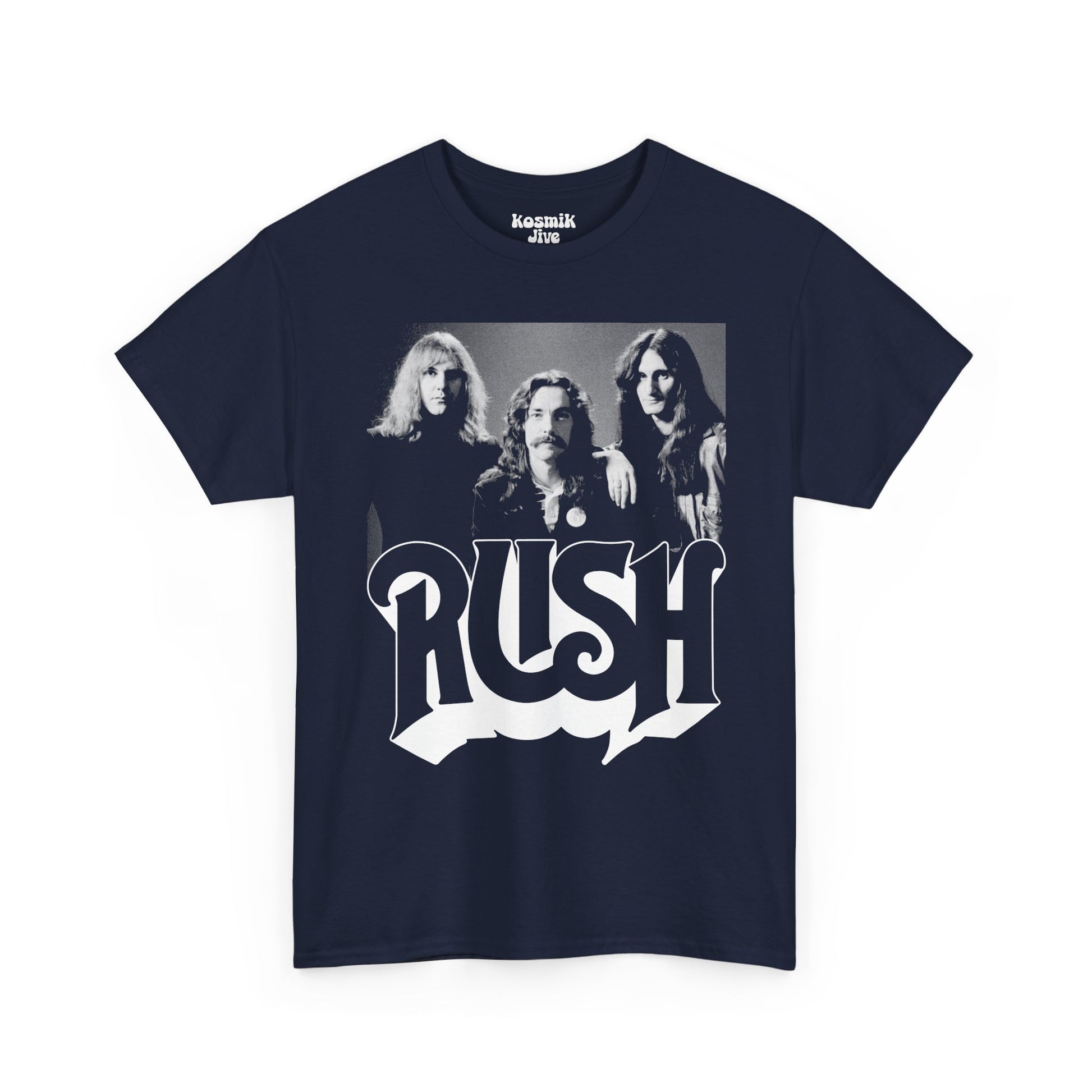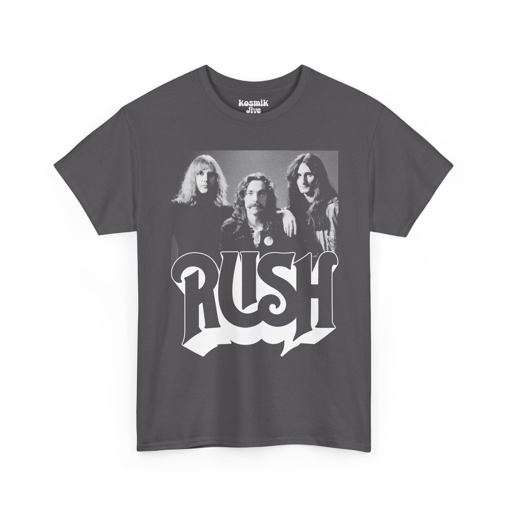 Vintage Rush T-shirt featuring the band’s early lineup in black and white. The bold retro logo recalls their first era — raw, heavy, and full of energy. A tribute to the beginnings of one of rock’s most inventive power trios. Perfect for fans of classic prog and hard rock style.